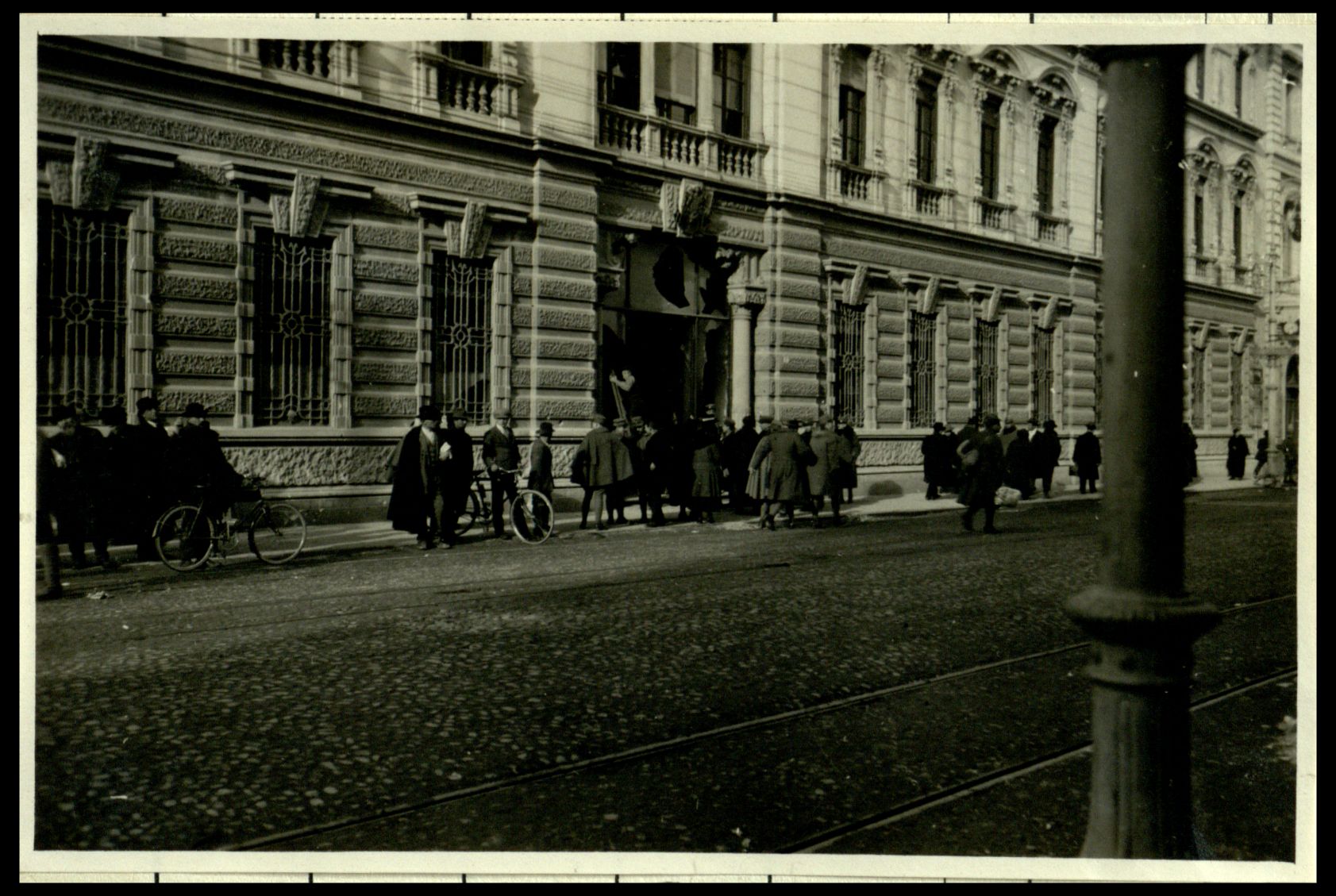 Scorcio di una via di Padova con civili e soldati. |