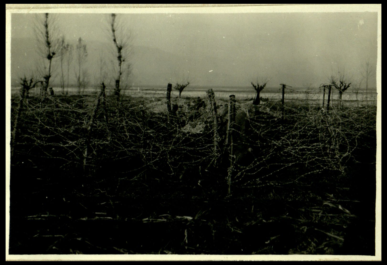 Costruzione di bocche da lupo fra i reticolati lungo il Corso della Piave sulle grave di Ciano |
