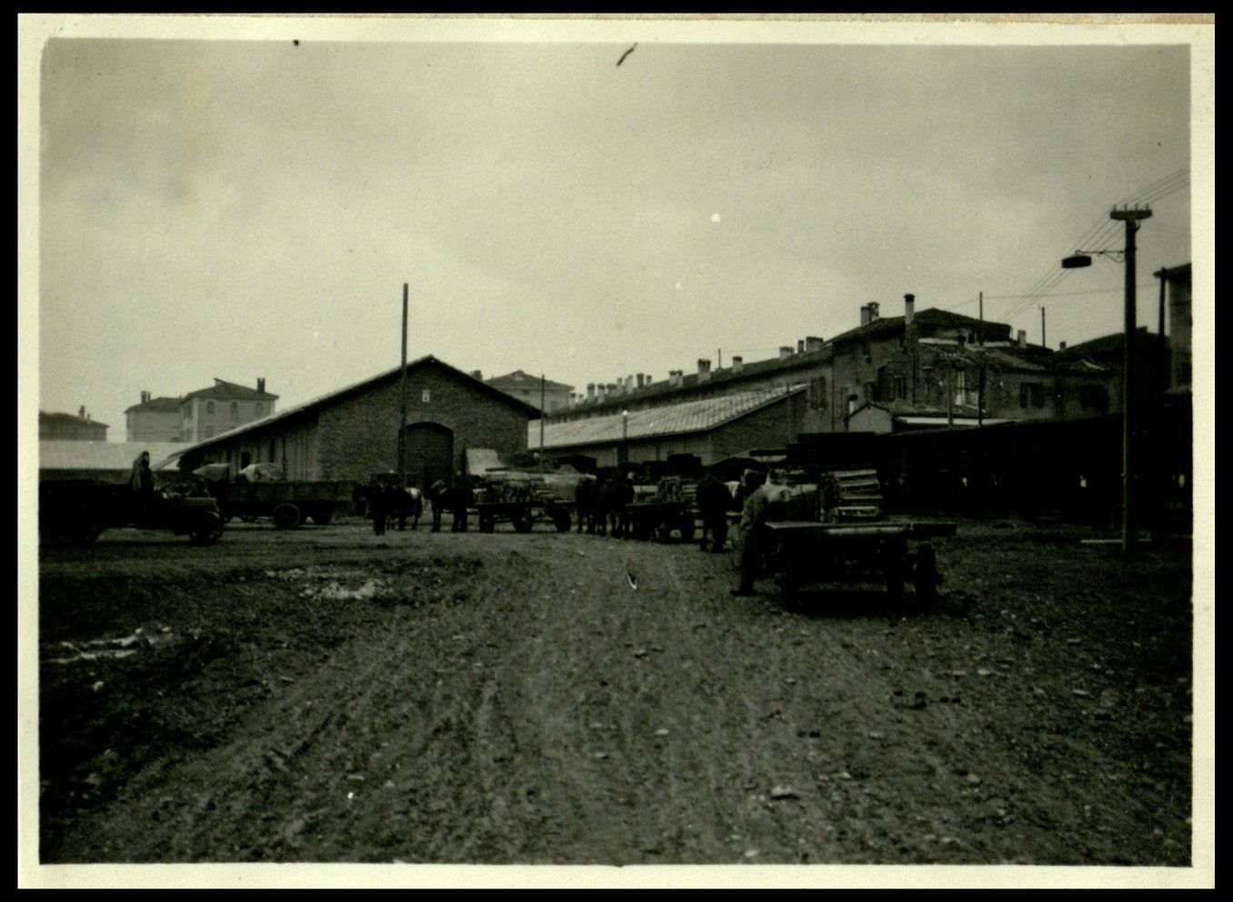 Carri di proiettili pronti per essere caricati sui vagoni |