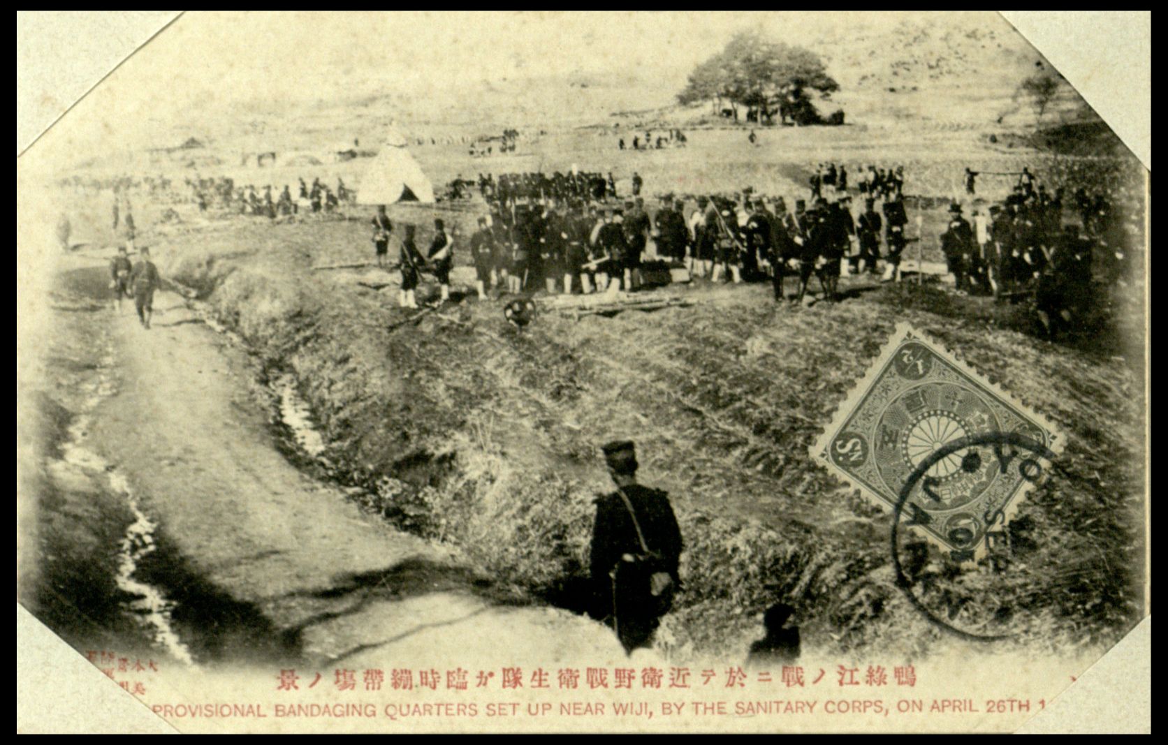 The provisional bandaging quarters set up near Wiji, by the sanitary corps, on april 26th 1904 |