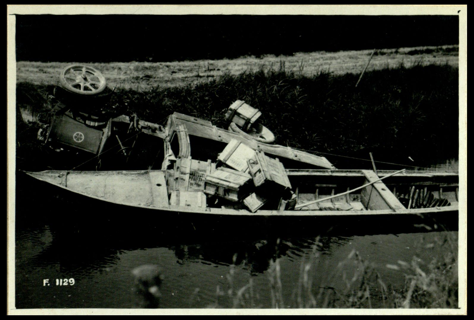 Presso Capo Sile, incidente d'auto. Un camion carico di munizioni rovesciatosi nel canale |