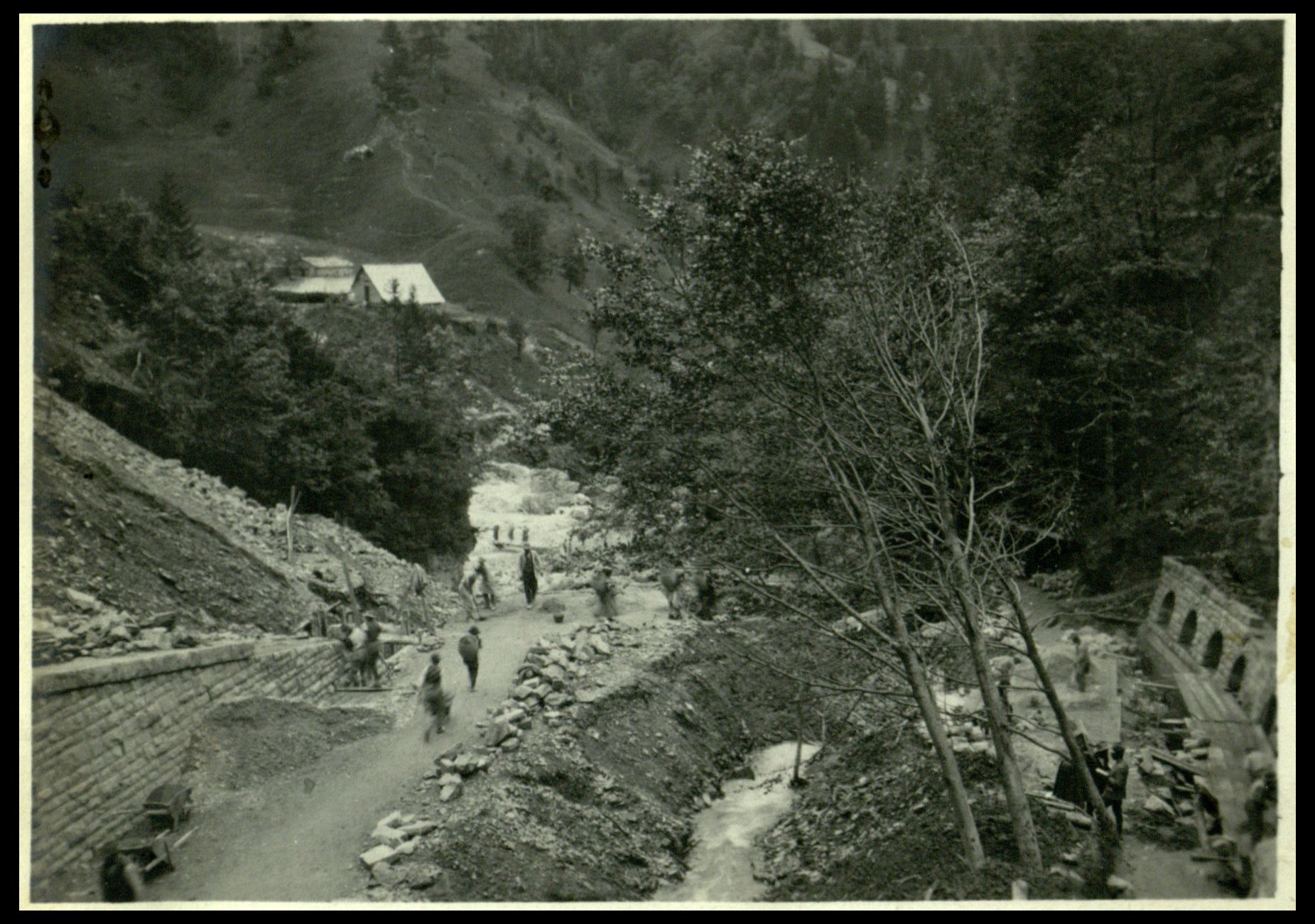 Militari e popolazione civile impegnata in lavori di sterro e edilizi |