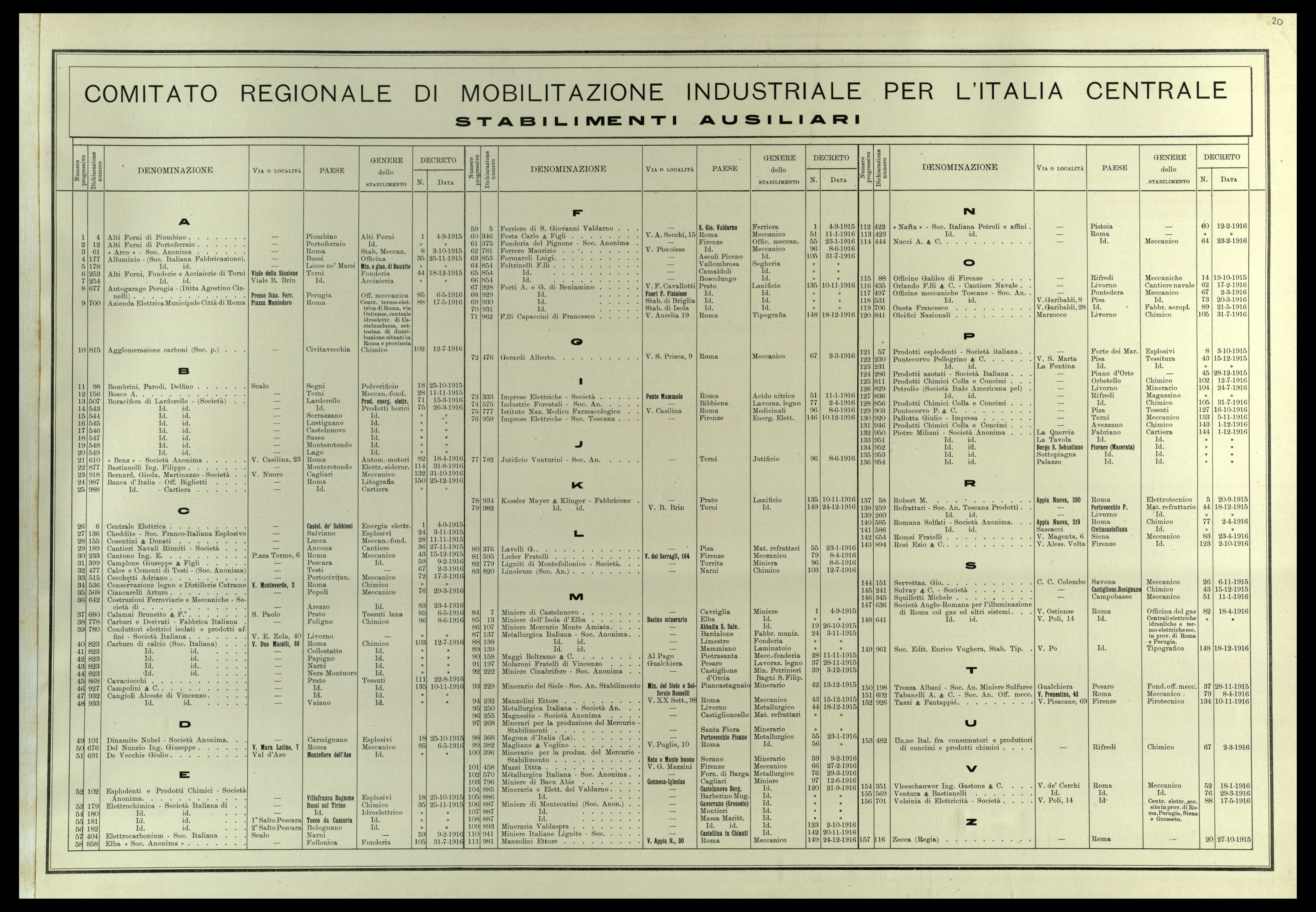 Comitato regionale di mobilitazione industriale per l'Italia centrale e la Sardegna. Stabilimenti industriali |