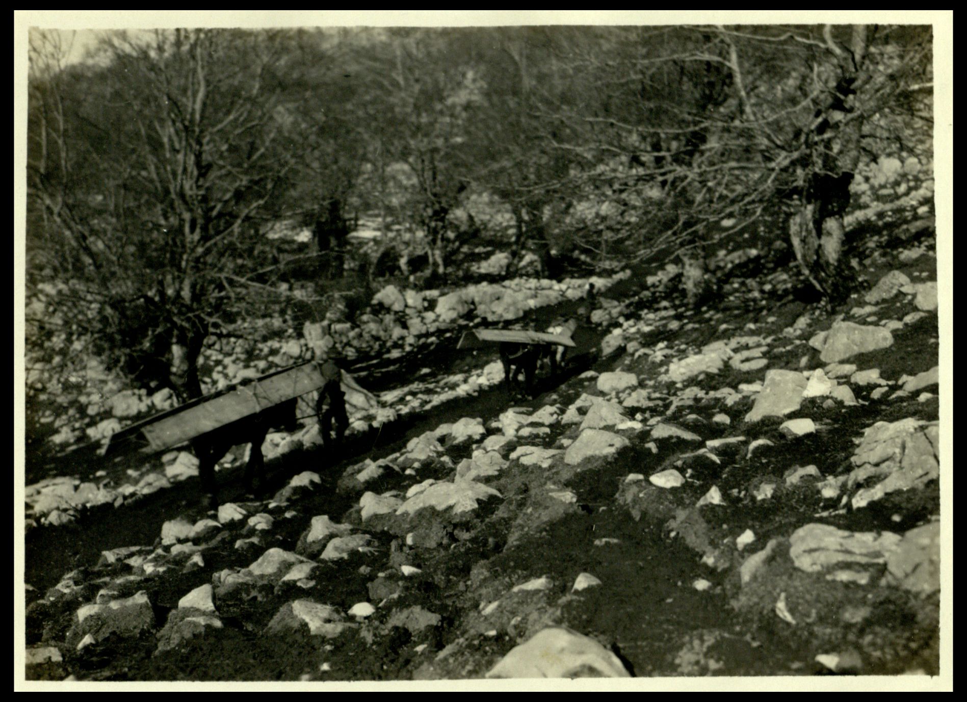 Montenero. Trasporto di tavole per la costruzione di baracche |