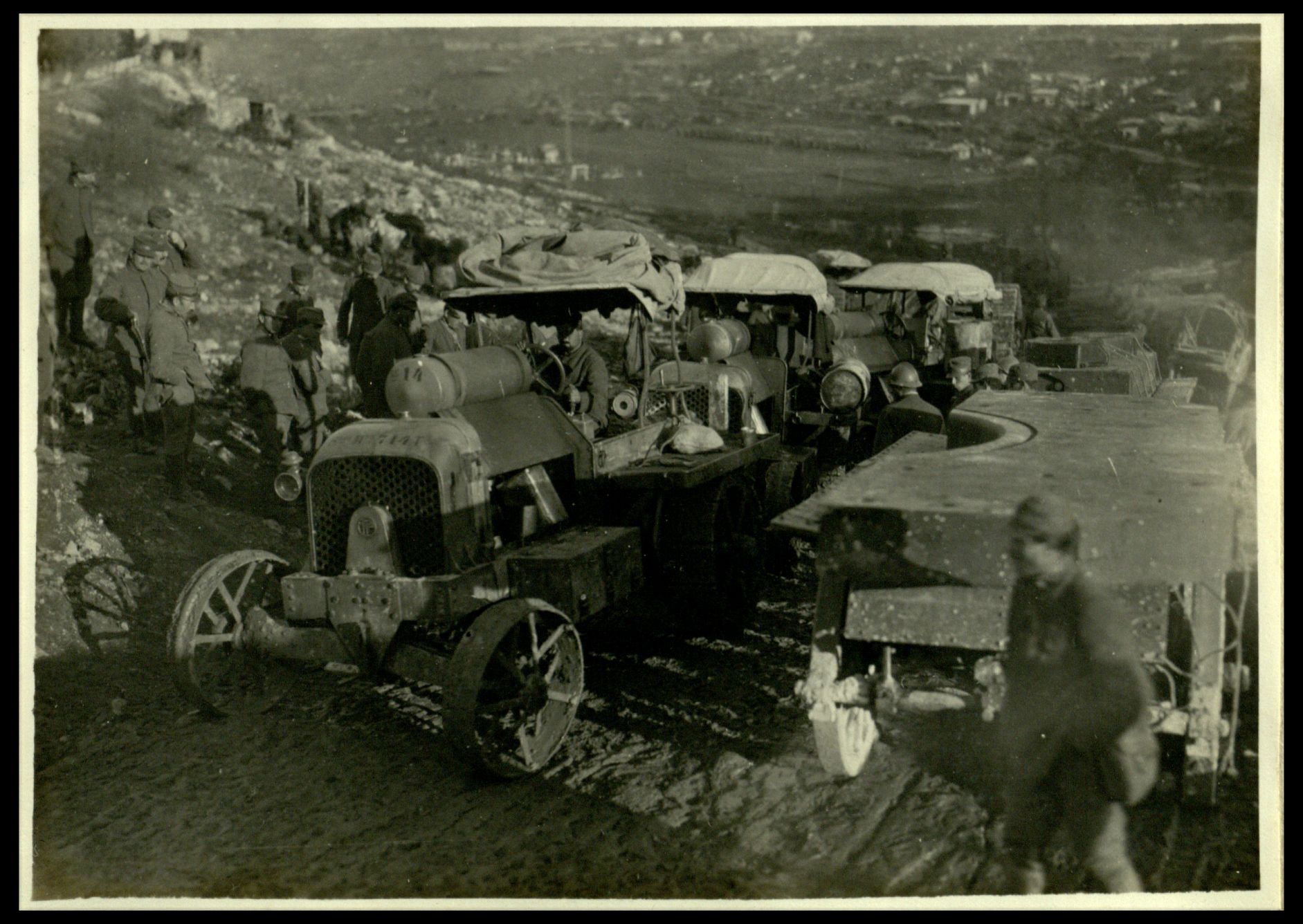 Automezzi in colonna traino un pezzo d'artiglieria |