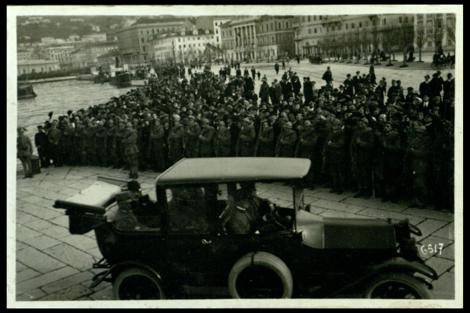 Il Re e il sindaco Valerio al momento dello sbarco a Trieste |