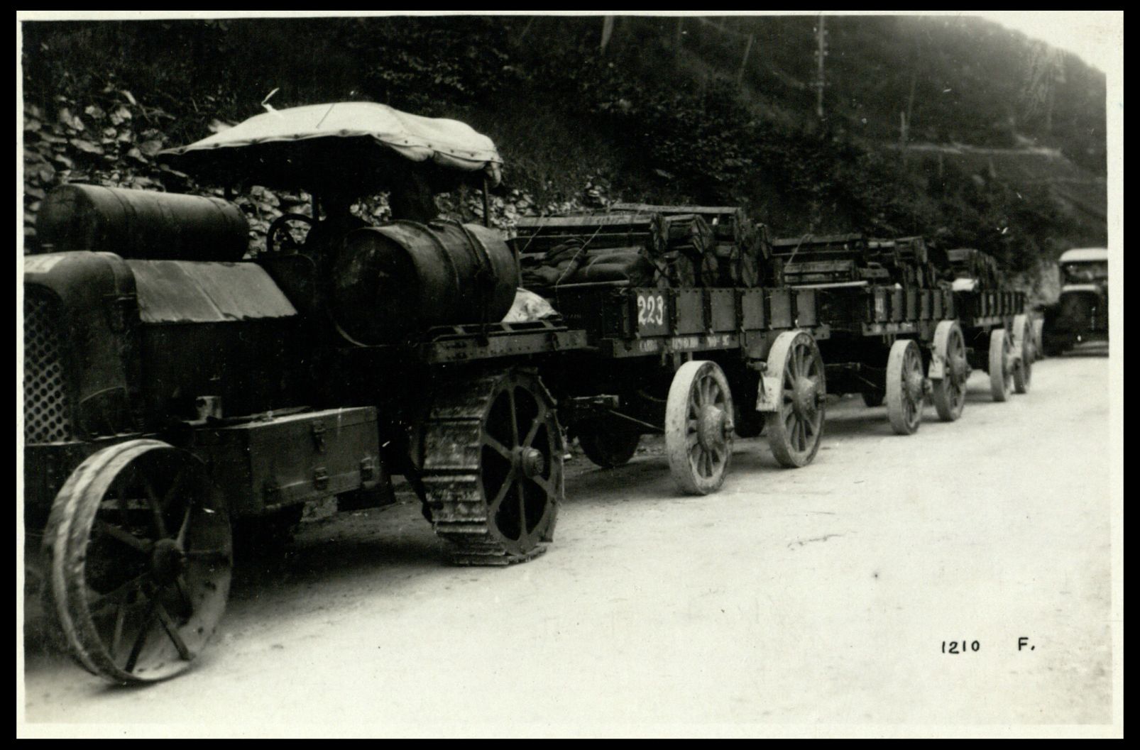 16 giugno 1918. Trattrici, che trasportano bombarde verso l'Altopiano di Asiago |