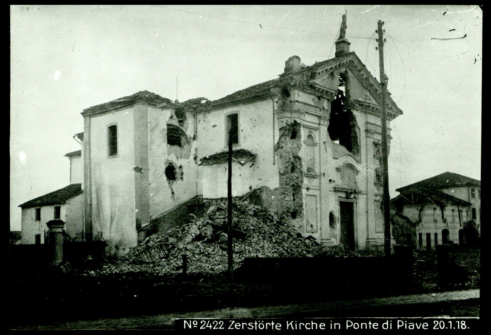 N°2422 Zerstörte kirche in Ponte di Piave. Fotografia dell'esercito Austro-Ungarico |