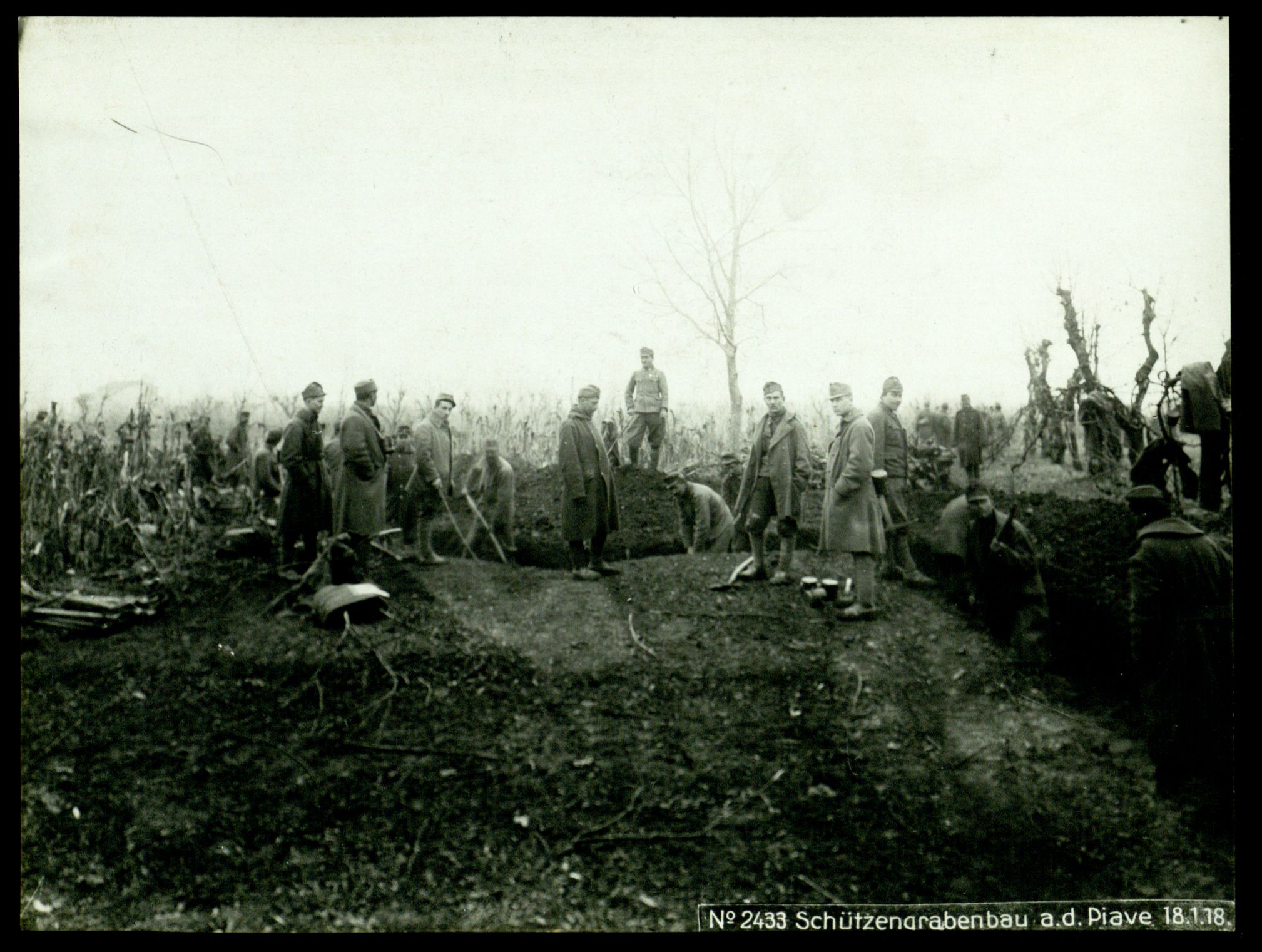 N°2433 Schützengrabenbau a.d. Piave. Fotografia dell'esercito Austro-Ungarico |