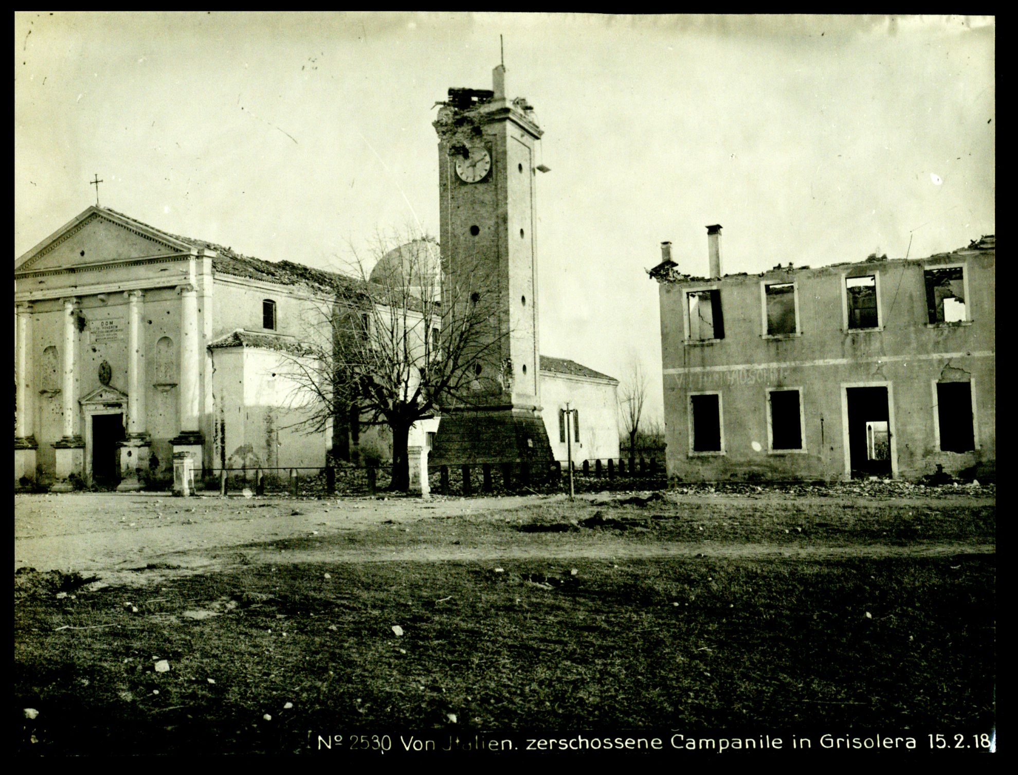 N°2530 Von italien. zerschossene campanile in Grisolera. Fotografia dell'esercito Austro-Ungarico |