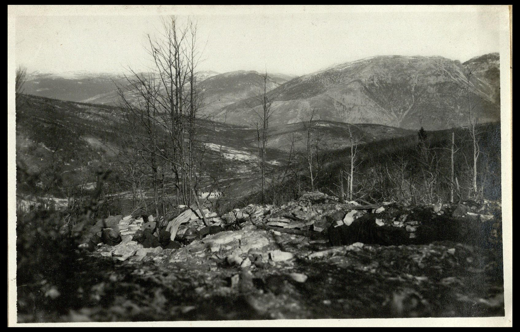 Conca fra Monte Melago e Sasso recentemente conquistata. In mezzo case Melaghetto |