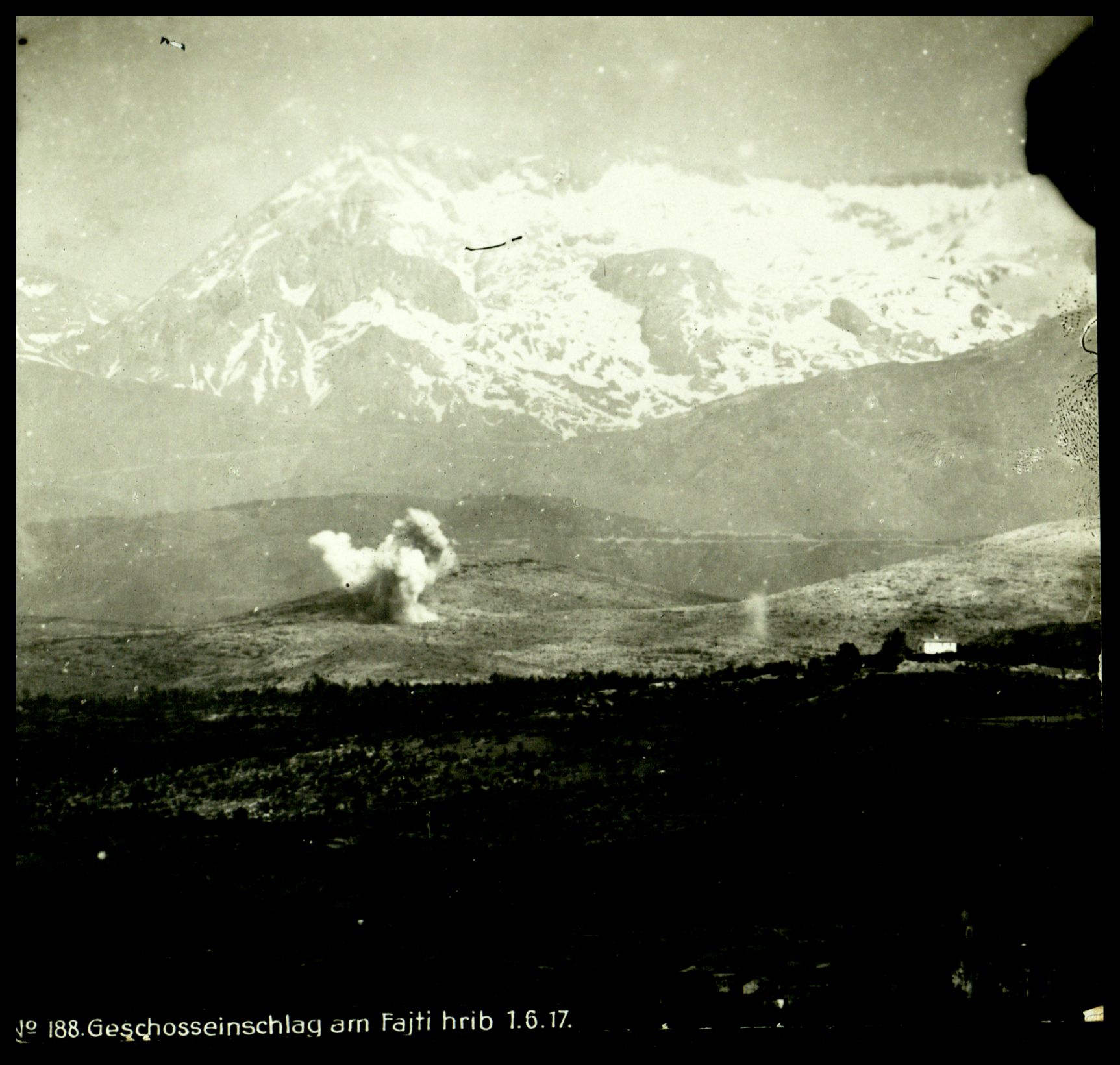 N°188 Geschosseinschlag am Faiti hrib. Fotografia dell'esercito Austro-Ungarico |