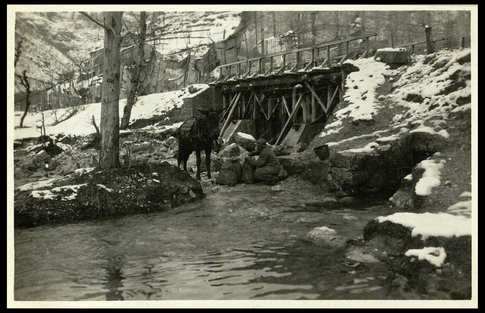 I rifornimenti d'acqua per le truppe in linea. Val Posina. |