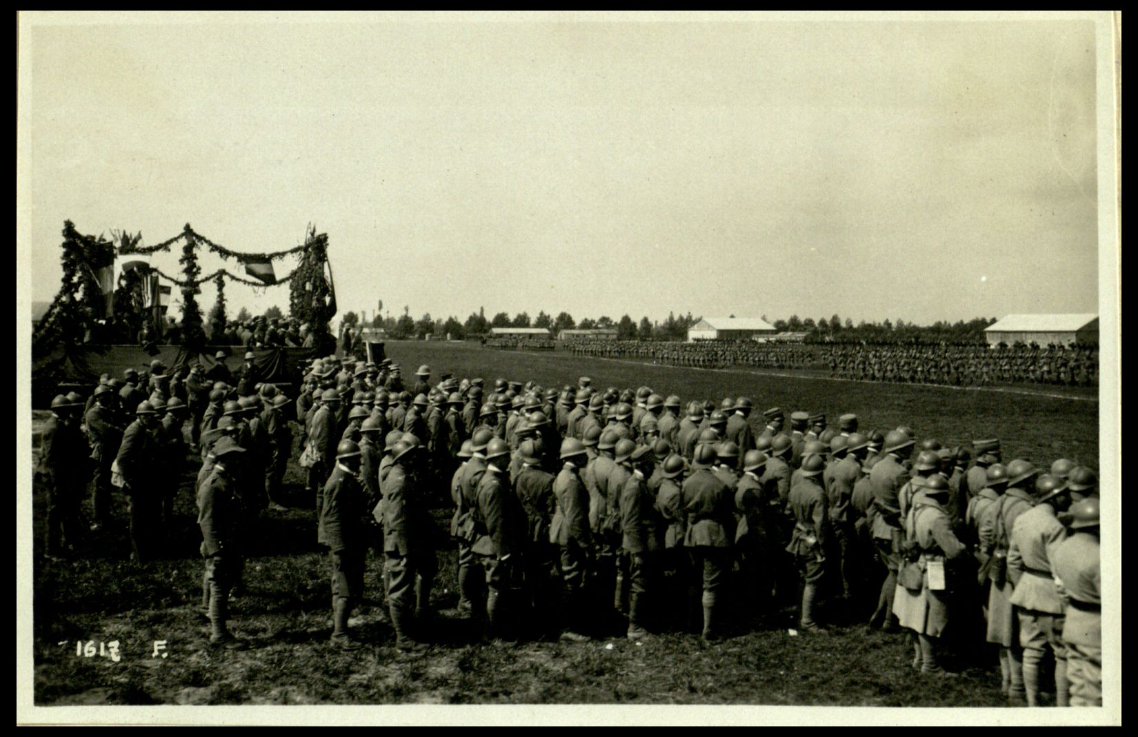 La festa ai vincitori degli altipiani. 4 luglio 1918. A Nole, Bassano, Vicenza. La sfilata delle truppe davanti al Campo della cerimonia e dei decorati |