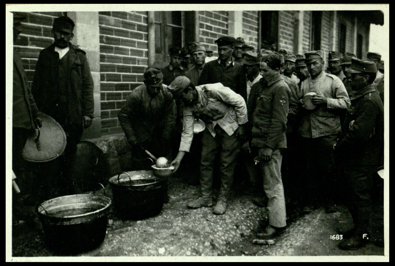 Ai campi di concentramento dell'Italia centrale e meridionale. 1 - 15 giugno 1918. Campo di concentramento di Avezzano; prigionieri di nazionalità varie. Il rancio |