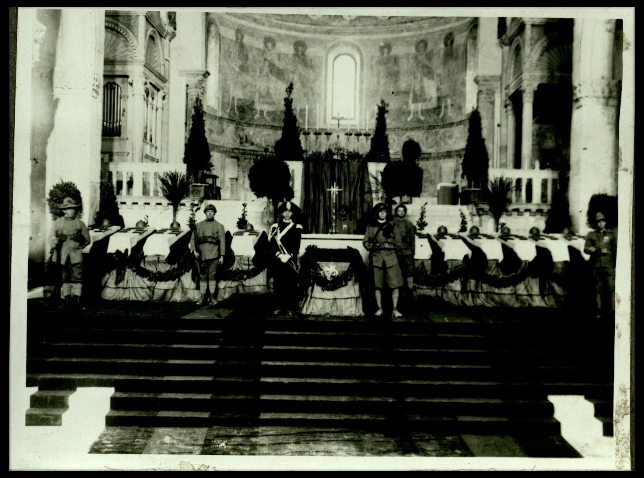 Aquileia. Interno della Basilica con le salme prima della funzione |