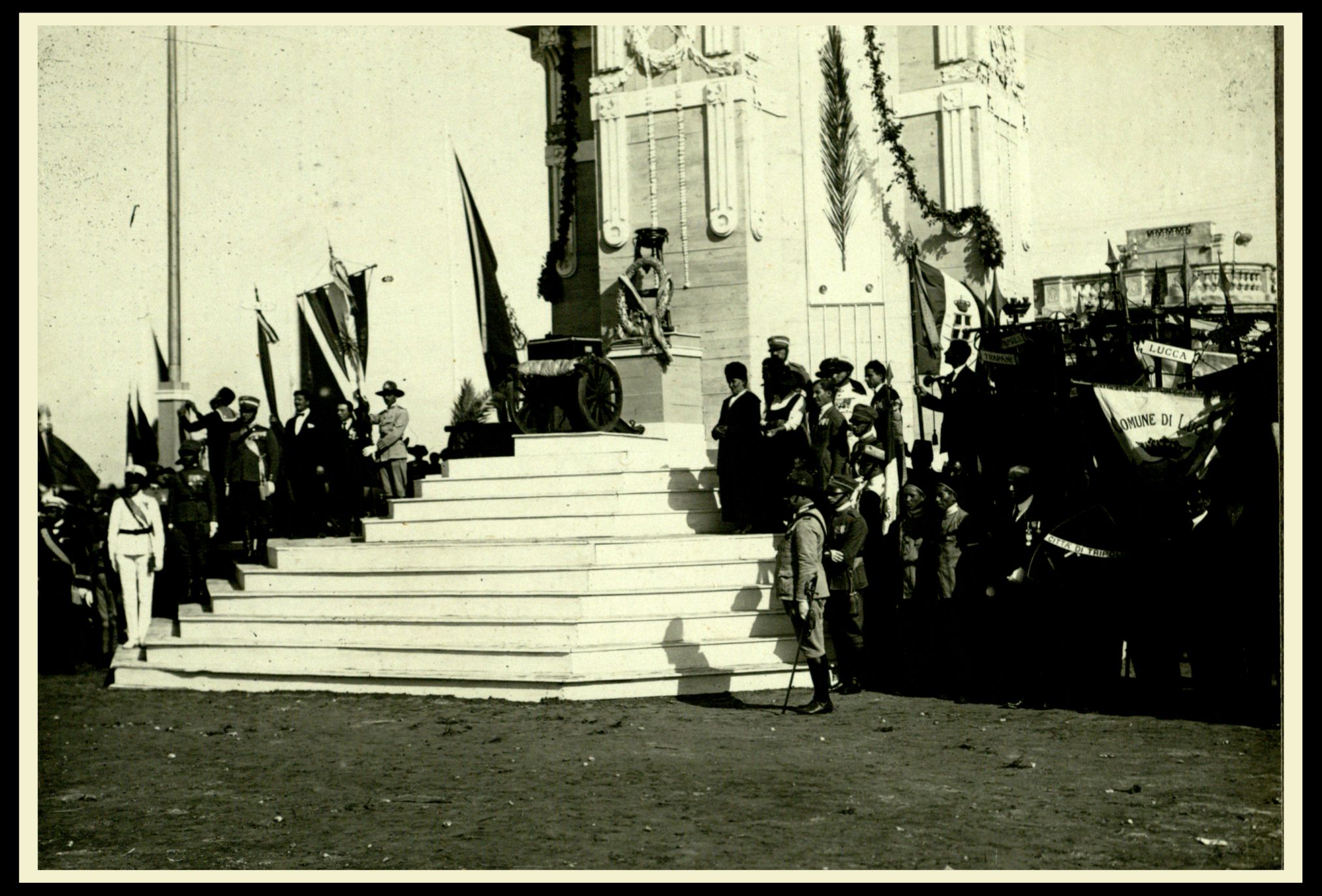 Tripoli. Mentre le truppe presentano le armi, la bandiera di combattimento del "Lanciere" viene issata sull'ara votiva |