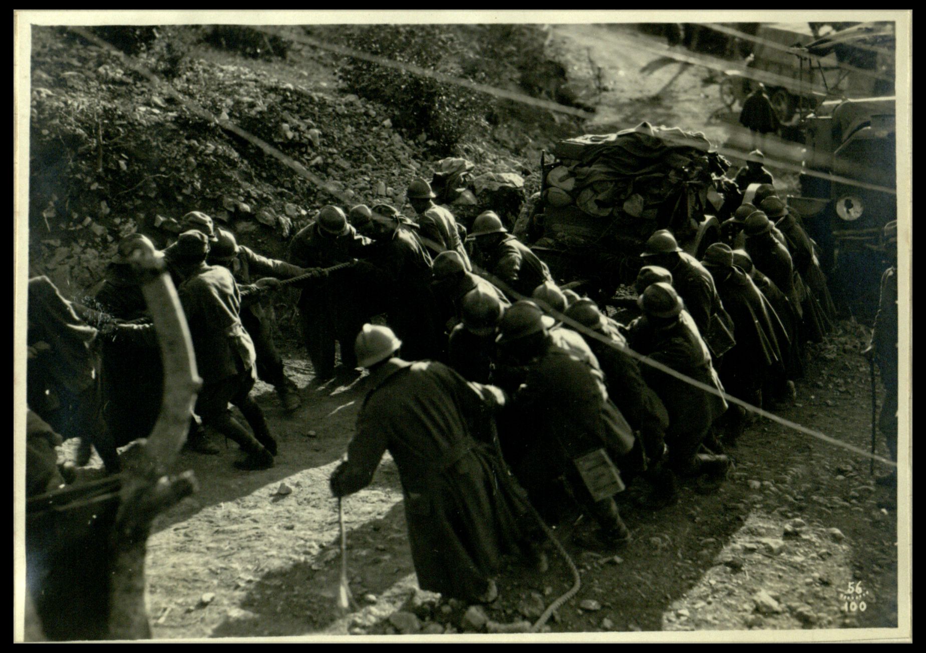Traino a mano delle trattrici abbandonate dagli austriaci |