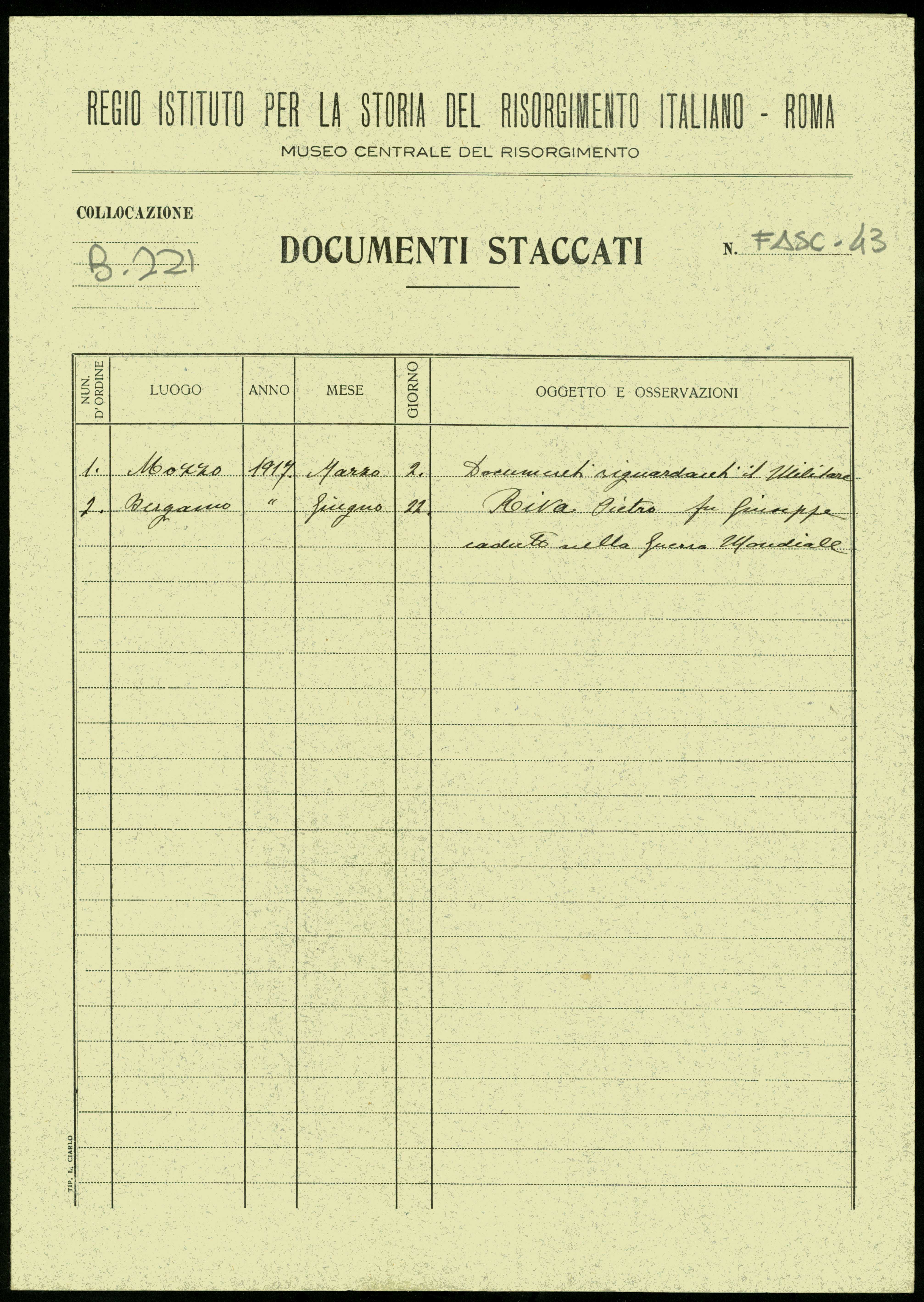 Istituto per la Storia del Risorgimento Italian.../Fondo caduti prima guerra mondiale/Riscosso Eugenio - Riviera Pietro/Riva Pietro, Mozzo (Bergamo)