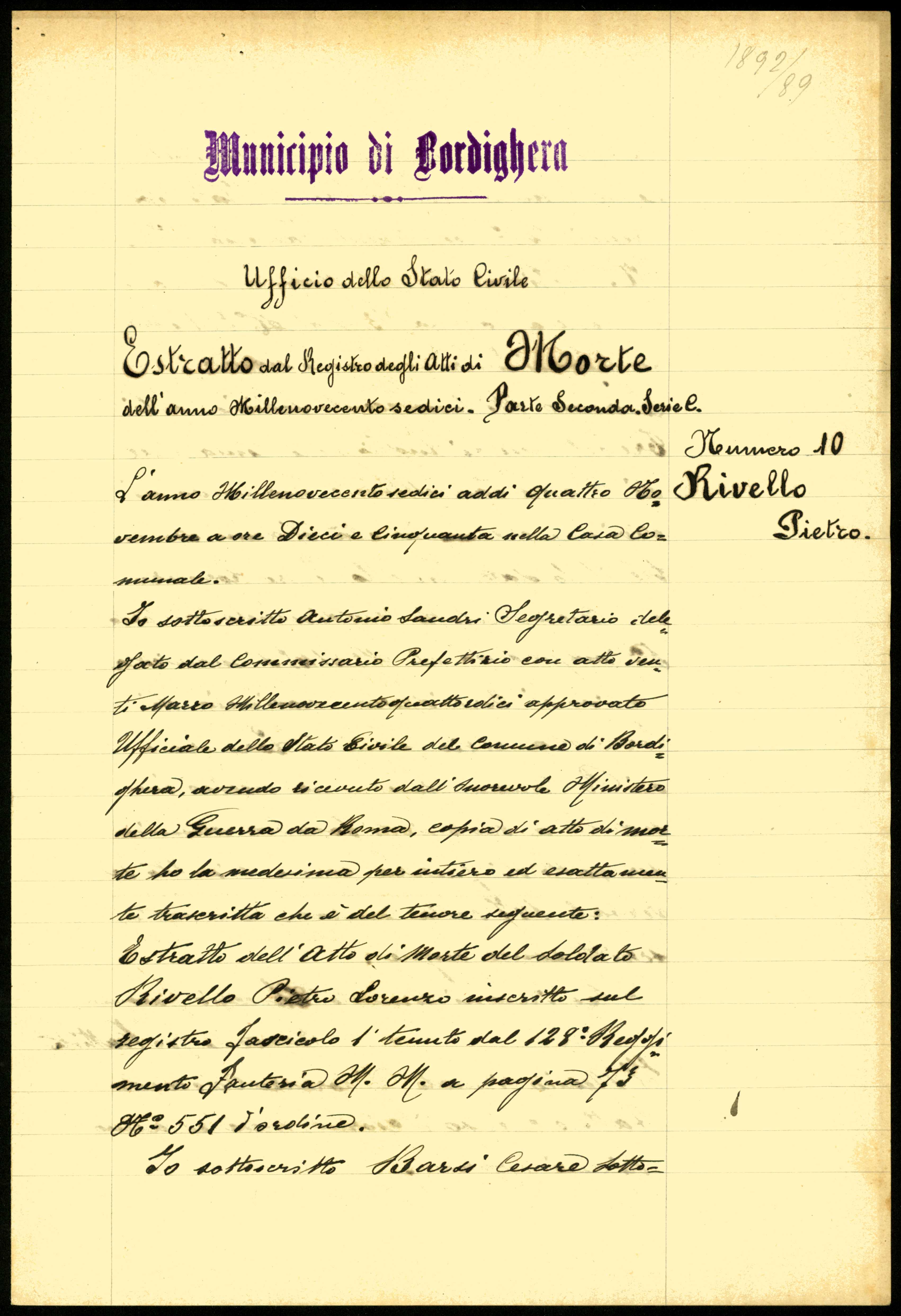 Documento: Rivello Pietro, Bordighera (Imperia)