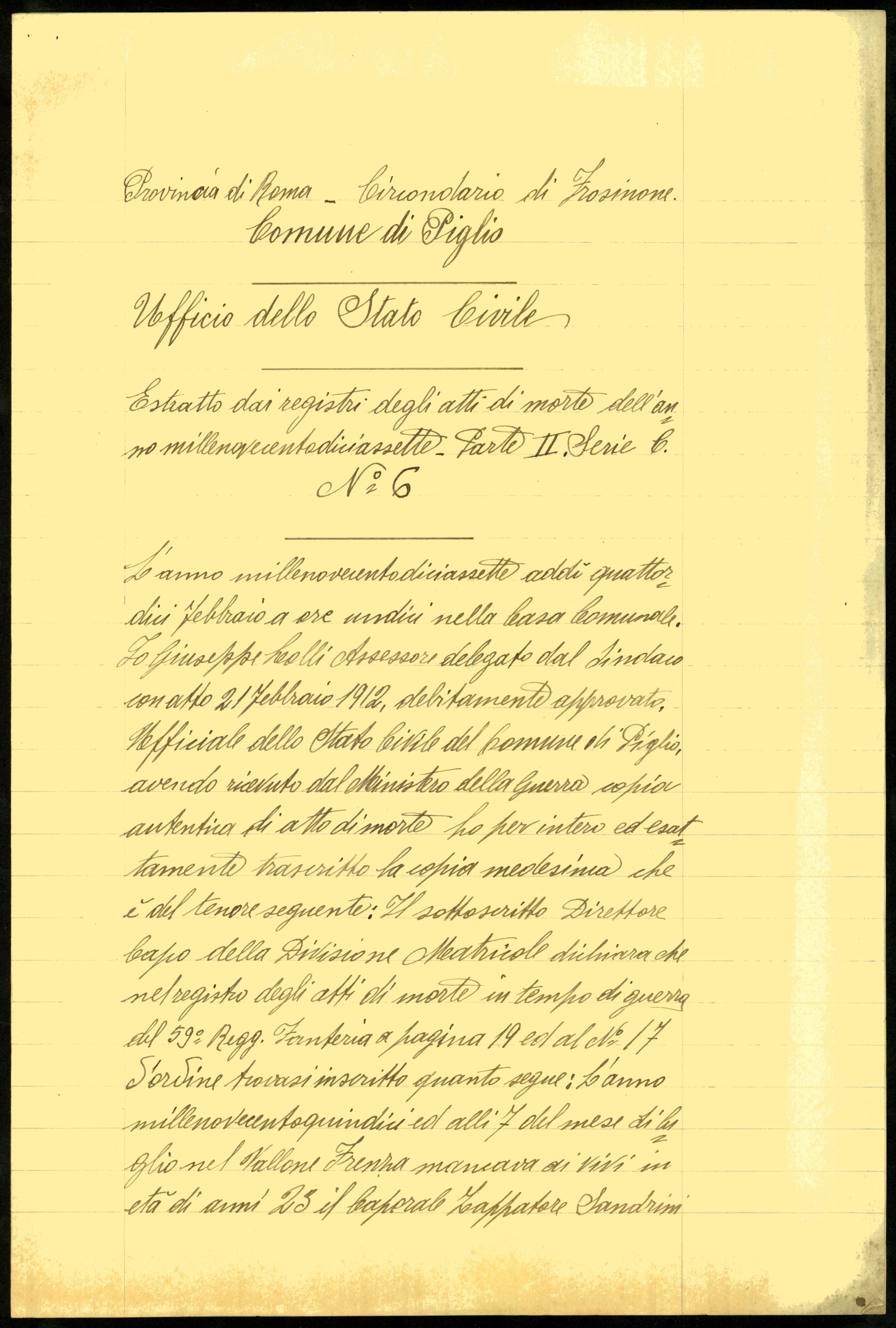 Istituto per la Storia del Risorgimento Italian.../Fondo caduti prima guerra mondiale/Sandei Lazzaro - Sansovini Corrado/Sandrini Andrea, Piglio (Roma)