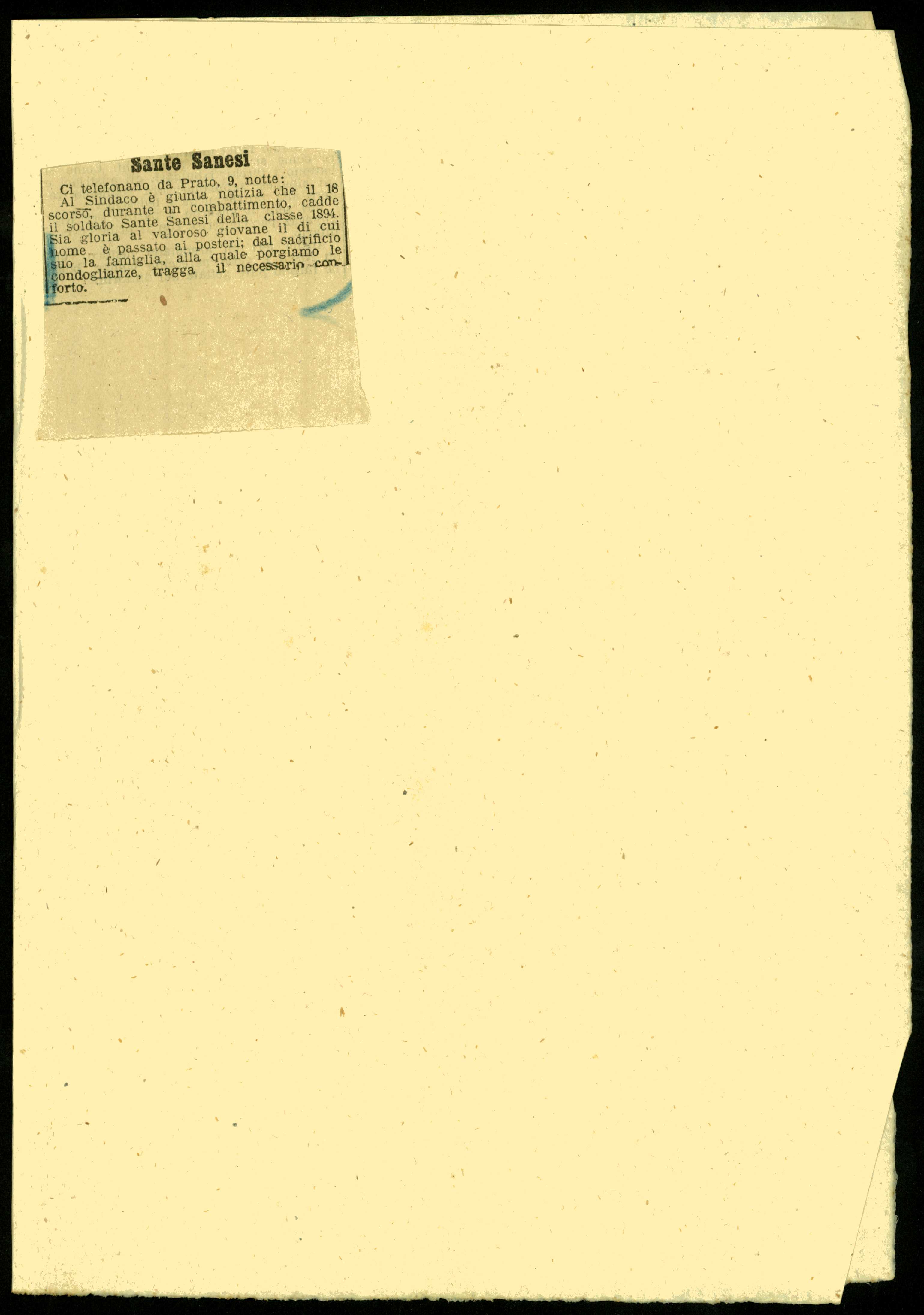 Istituto per la Storia del Risorgimento Italian.../Fondo caduti prima guerra mondiale/Sandei Lazzaro - Sansovini Corrado/Sanesi Sante, Prato (Firenze)