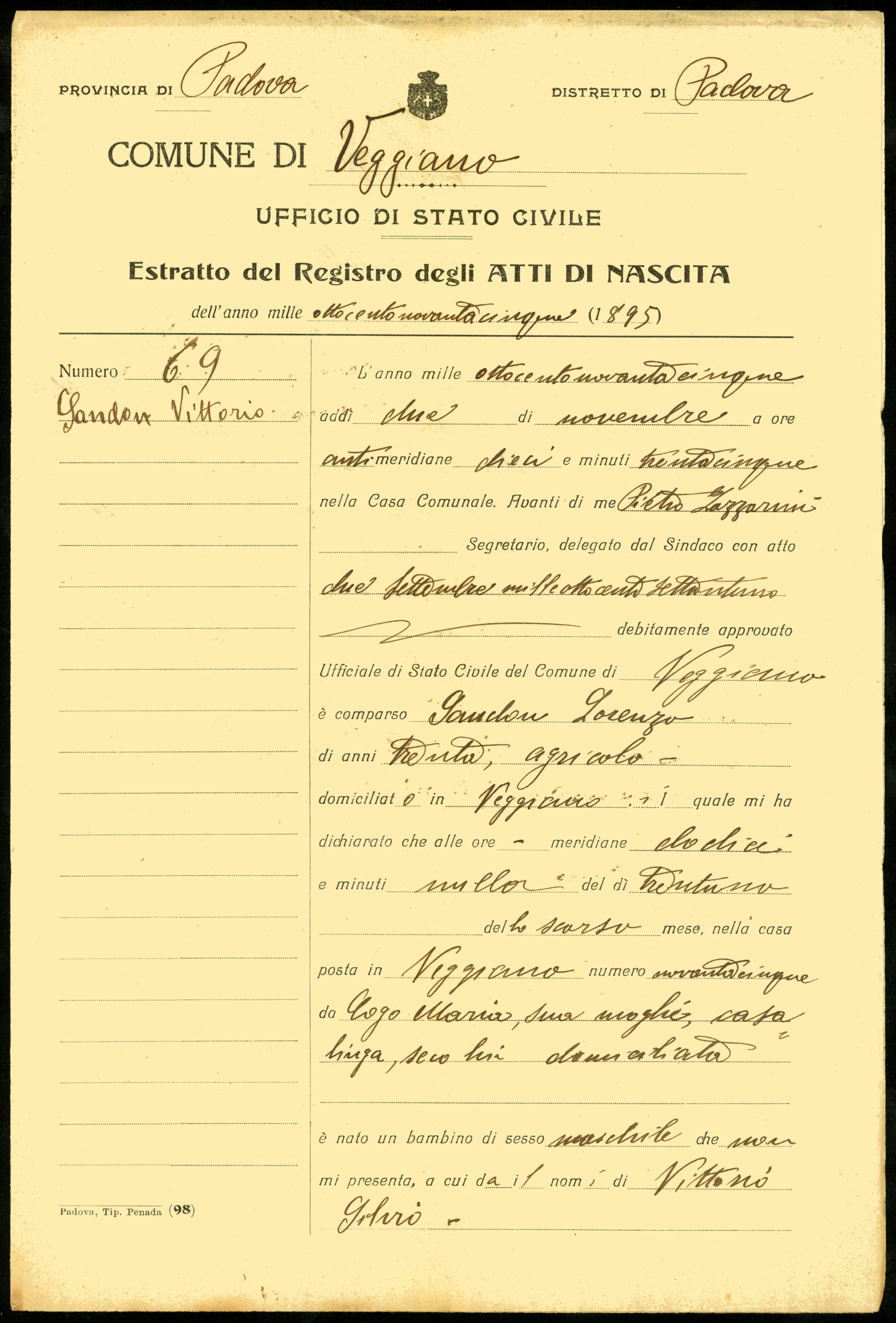 Istituto per la Storia del Risorgimento Italian.../Fondo caduti prima guerra mondiale/Sandei Lazzaro - Sansovini Corrado/Sandon Vittorio, Veggiano (Padova)