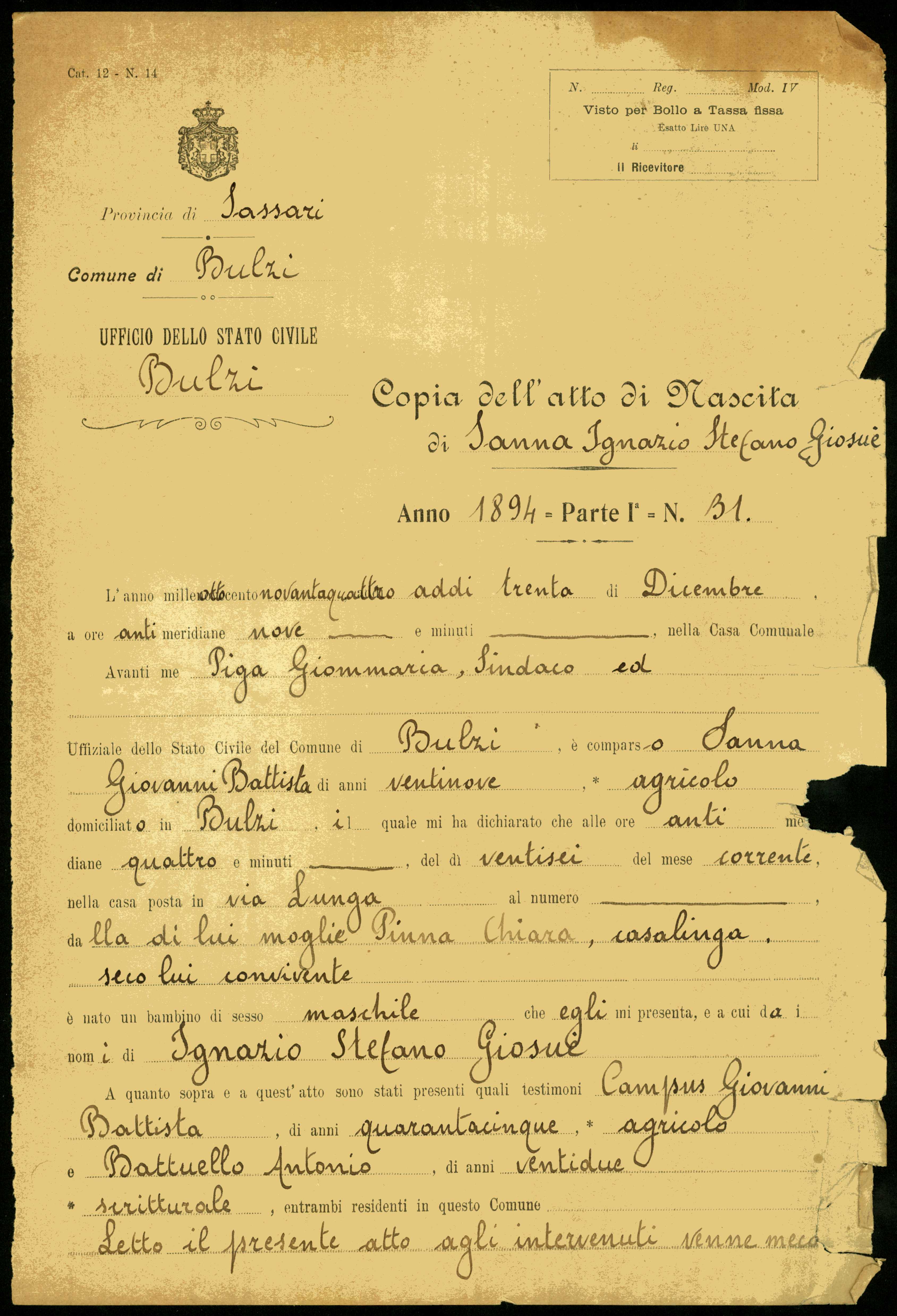 Istituto per la Storia del Risorgimento Italian.../Fondo caduti prima guerra mondiale/Sandei Lazzaro - Sansovini Corrado/Sanna Ignazio, Bulzi (Sassari)