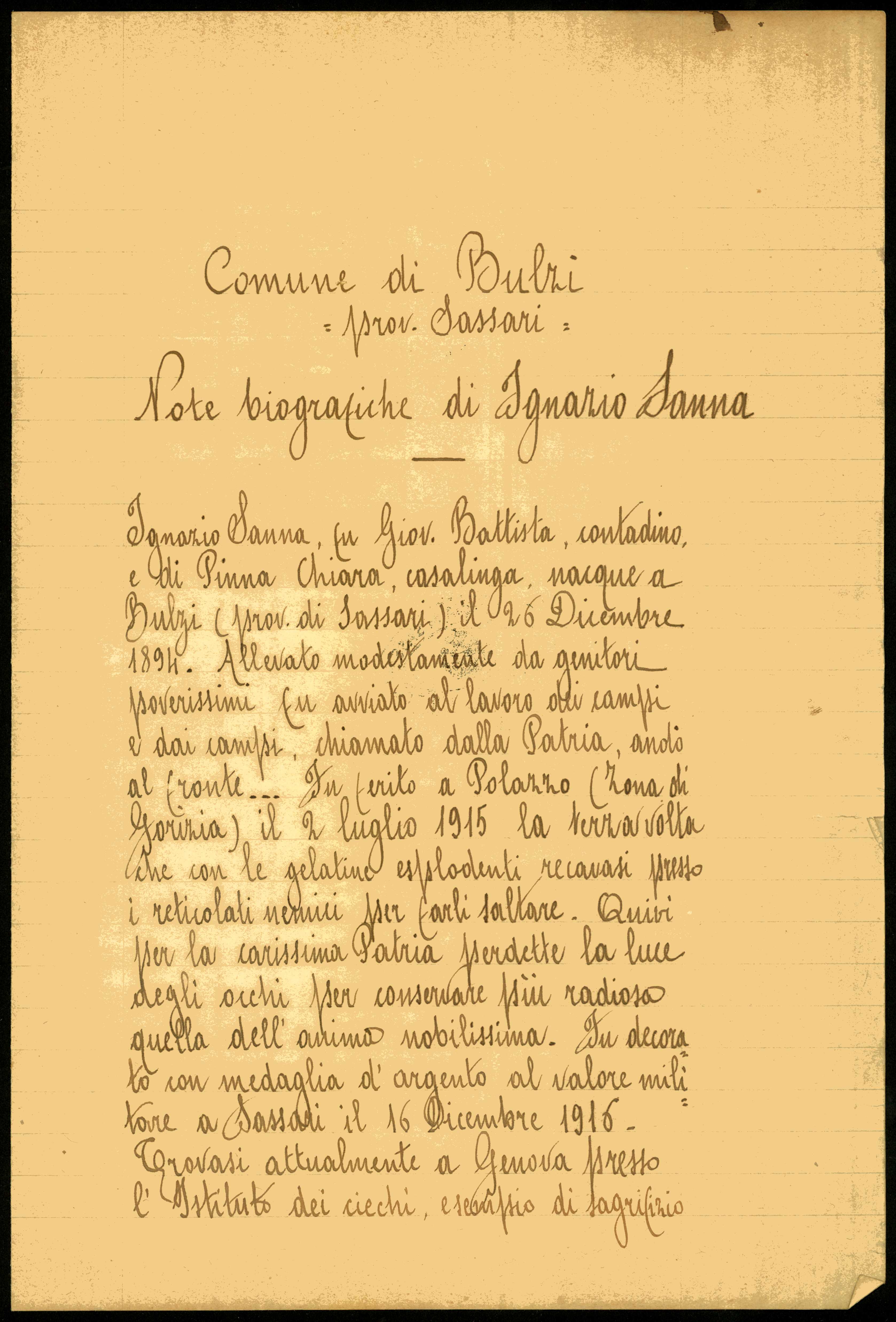 Istituto per la Storia del Risorgimento Italian.../Fondo caduti prima guerra mondiale/Sandei Lazzaro - Sansovini Corrado/Sanna Ignazio, Bulzi (Sassari)