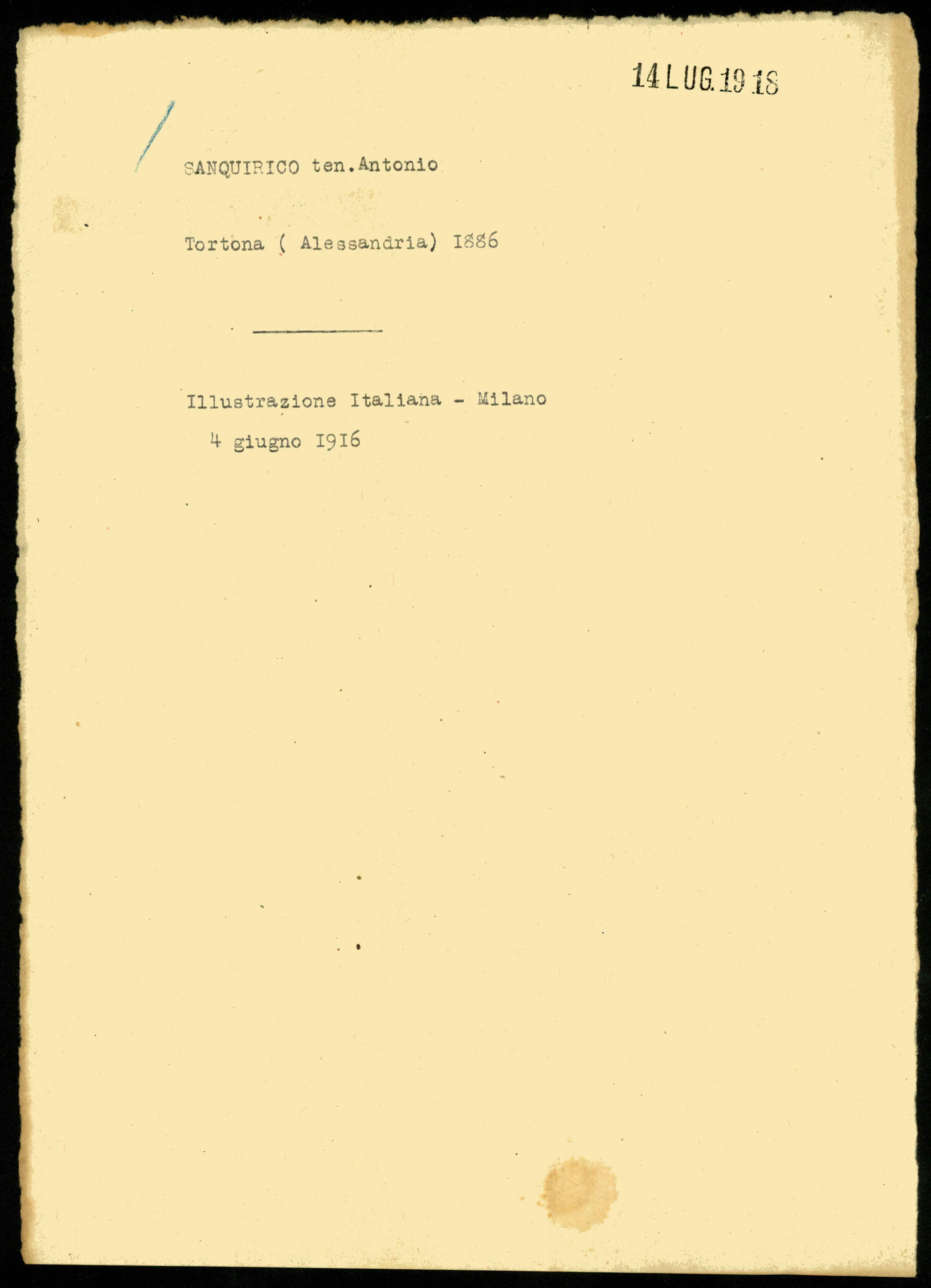 Percorso: Istituto per la Storia del Risorgimento Italian.../Fondo caduti prima guerra mondiale/Sandei Lazzaro - Sansovini Corrado/Sanquirico Antonio, Tortona (Alessandria)
