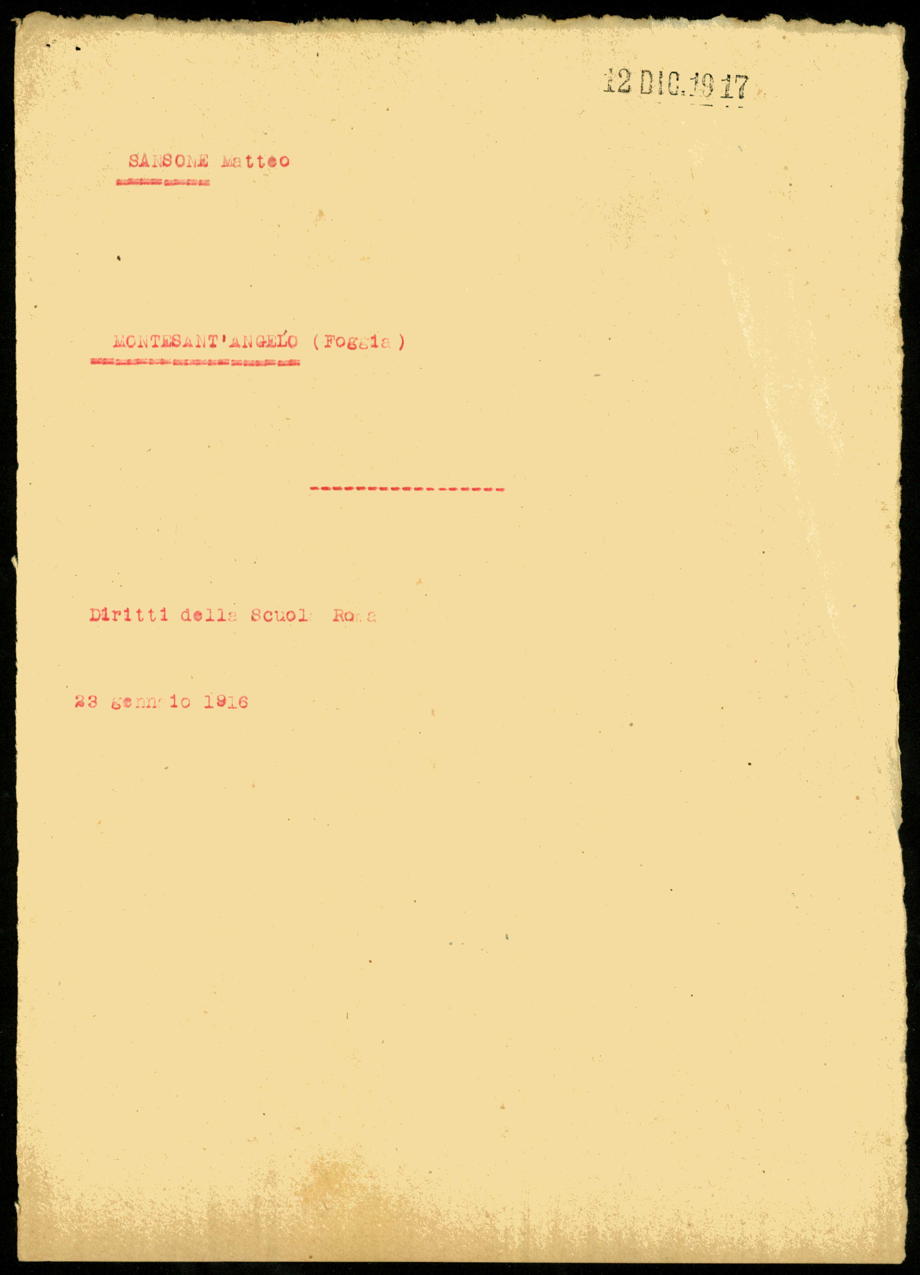Documento: Sansone Matteo, Monte Sant'Angelo (Foggia)