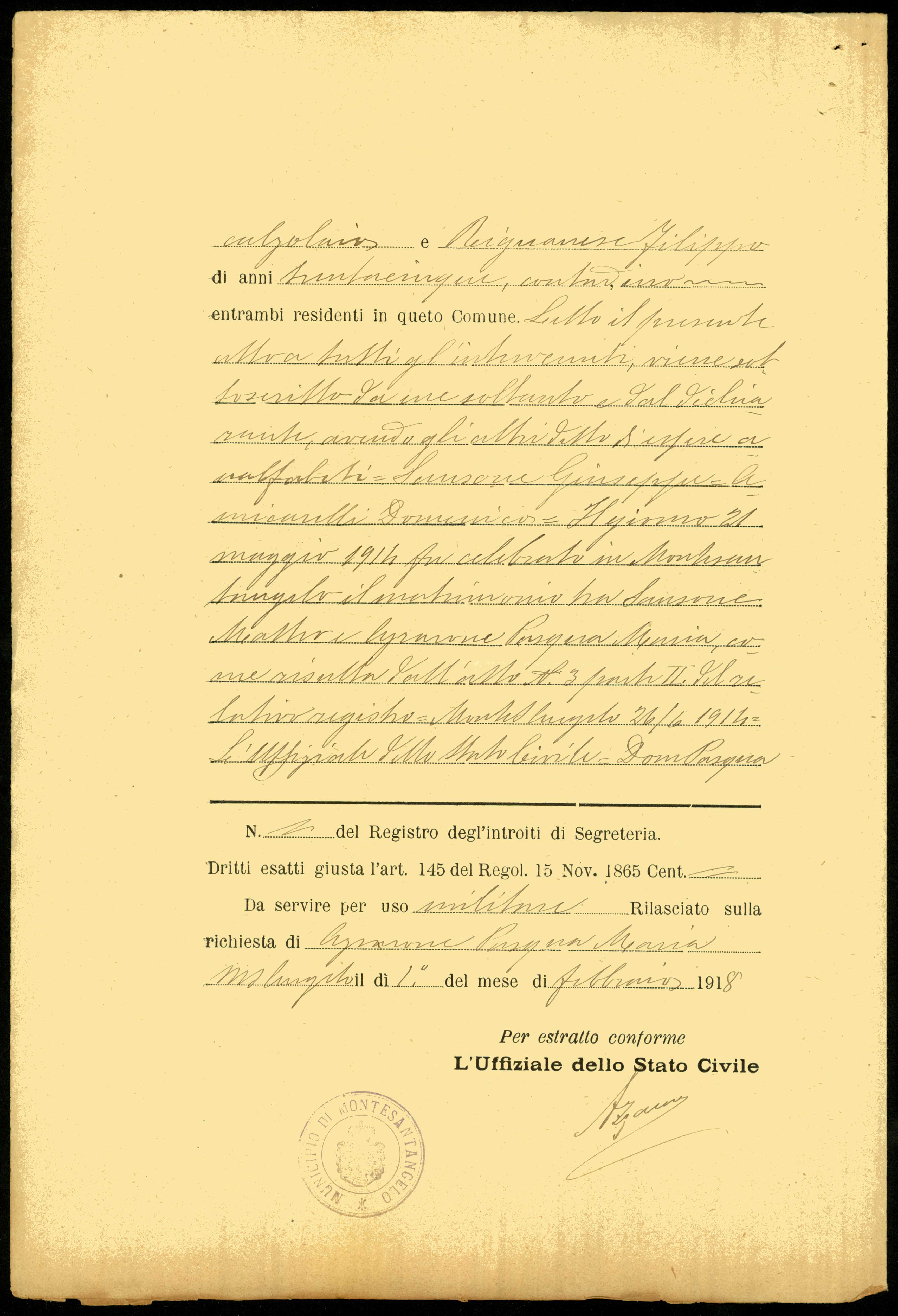 | Percorso: Istituto per la Storia del Risorgimento Italian.../Fondo caduti prima guerra mondiale/Sandei Lazzaro - Sansovini Corrado/Sansone Matteo, Monte Sant'Angelo (Foggia) | |||||||||||