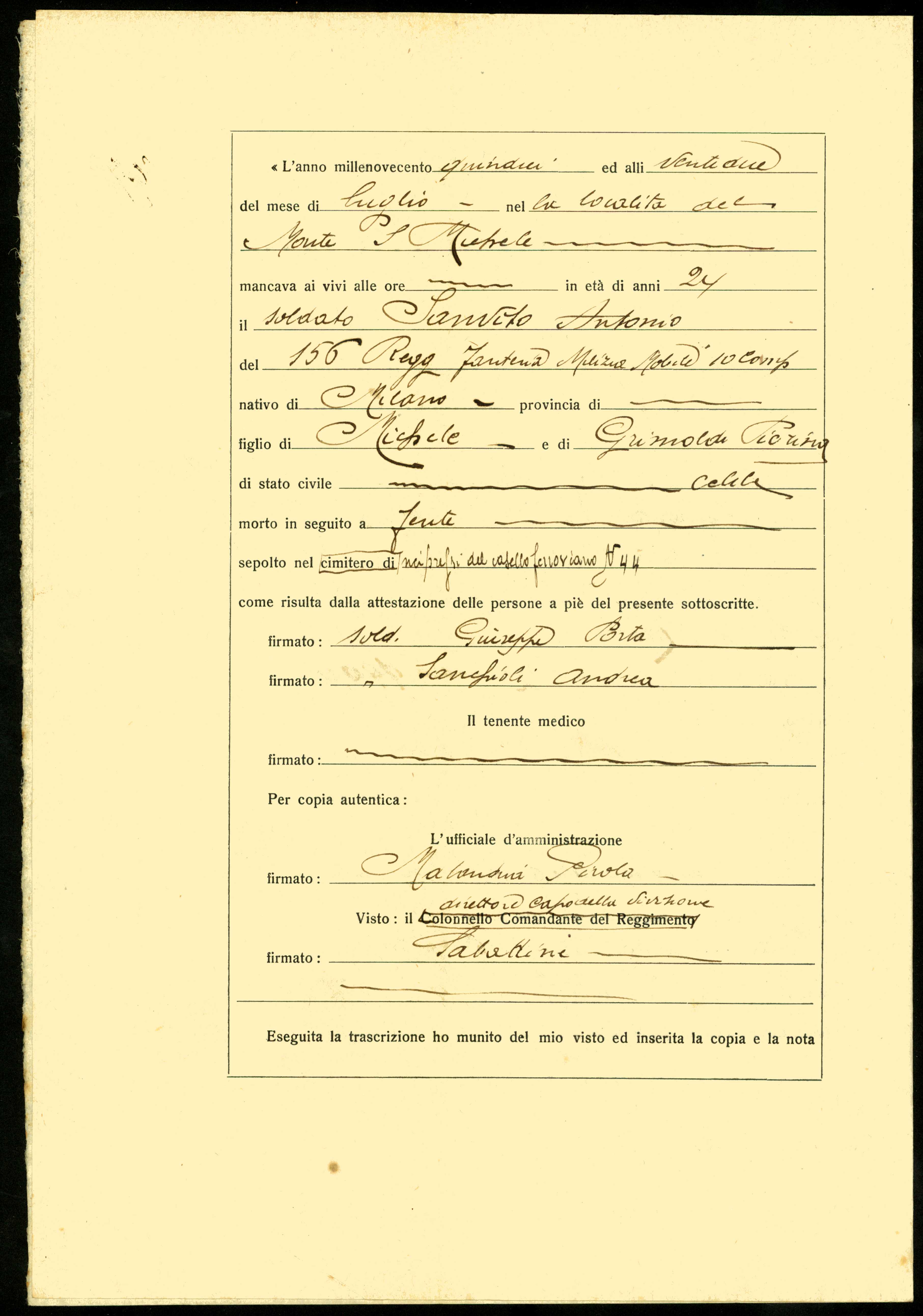 Istituto per la Storia del Risorgimento Italian.../Fondo caduti prima guerra mondiale/Santucci Angelo - Sarasino Silvestro/Sanvito Antonio, Milano
