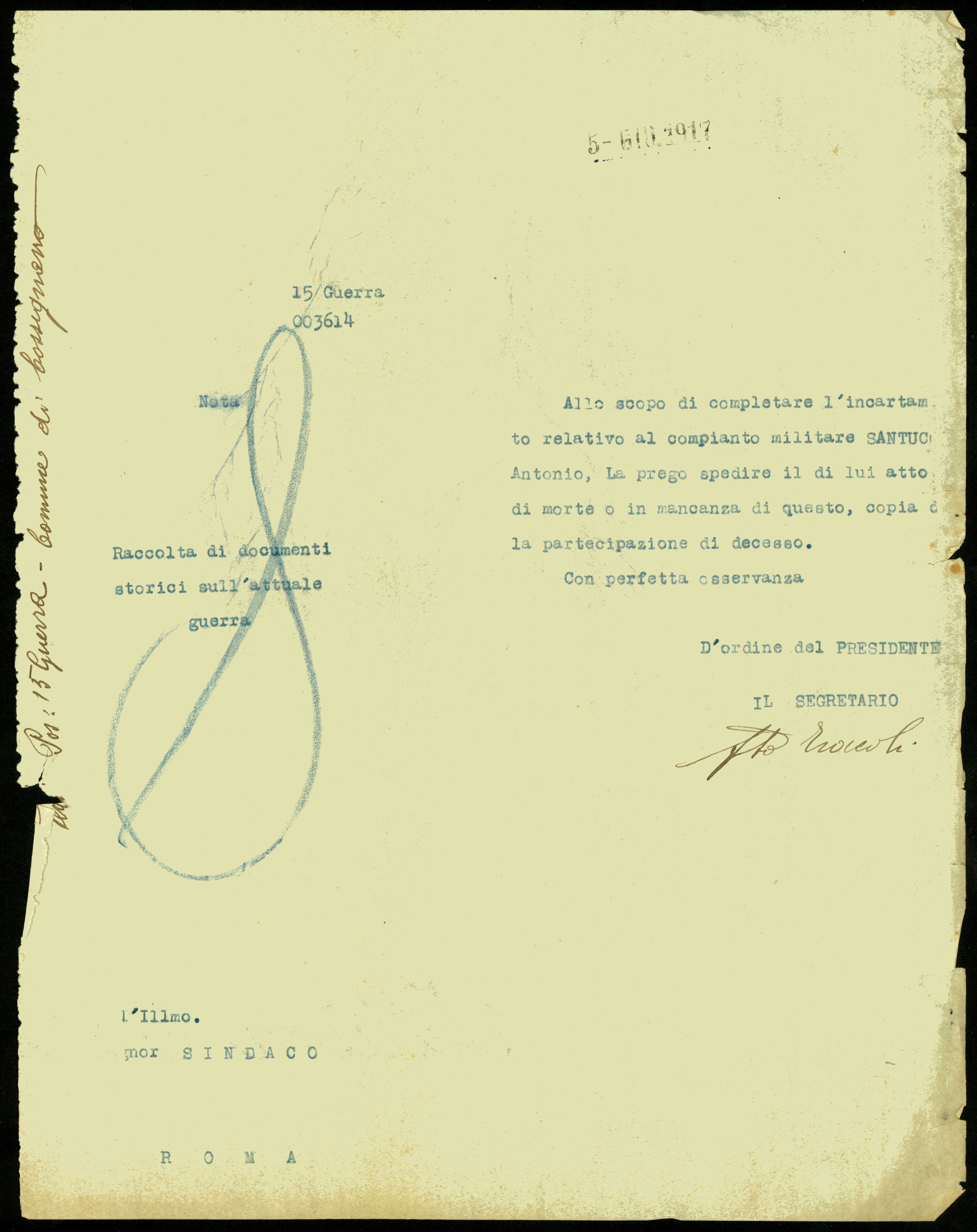 | Percorso: Istituto per la Storia del Risorgimento Italian.../Fondo caduti prima guerra mondiale/Santucci Angelo - Sarasino Silvestro/Santucci Antonio, Cossignano (Ascoli Piceno) | |||||||||||