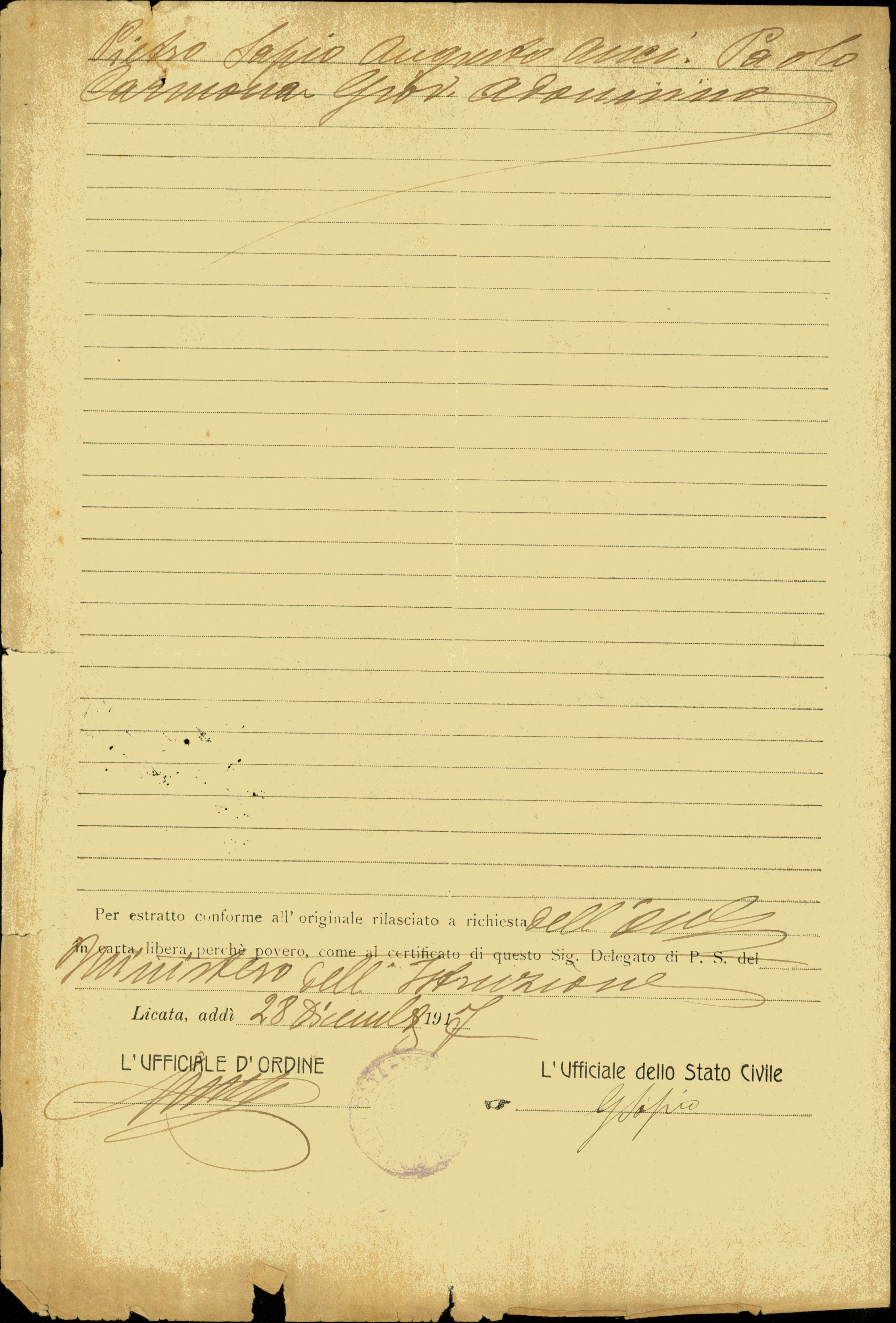 Percorso: Istituto per la Storia del Risorgimento Italian.../Fondo caduti prima guerra mondiale/Santucci Angelo - Sarasino Silvestro/Sapio Giovanbattista, Licata (Girgenti)