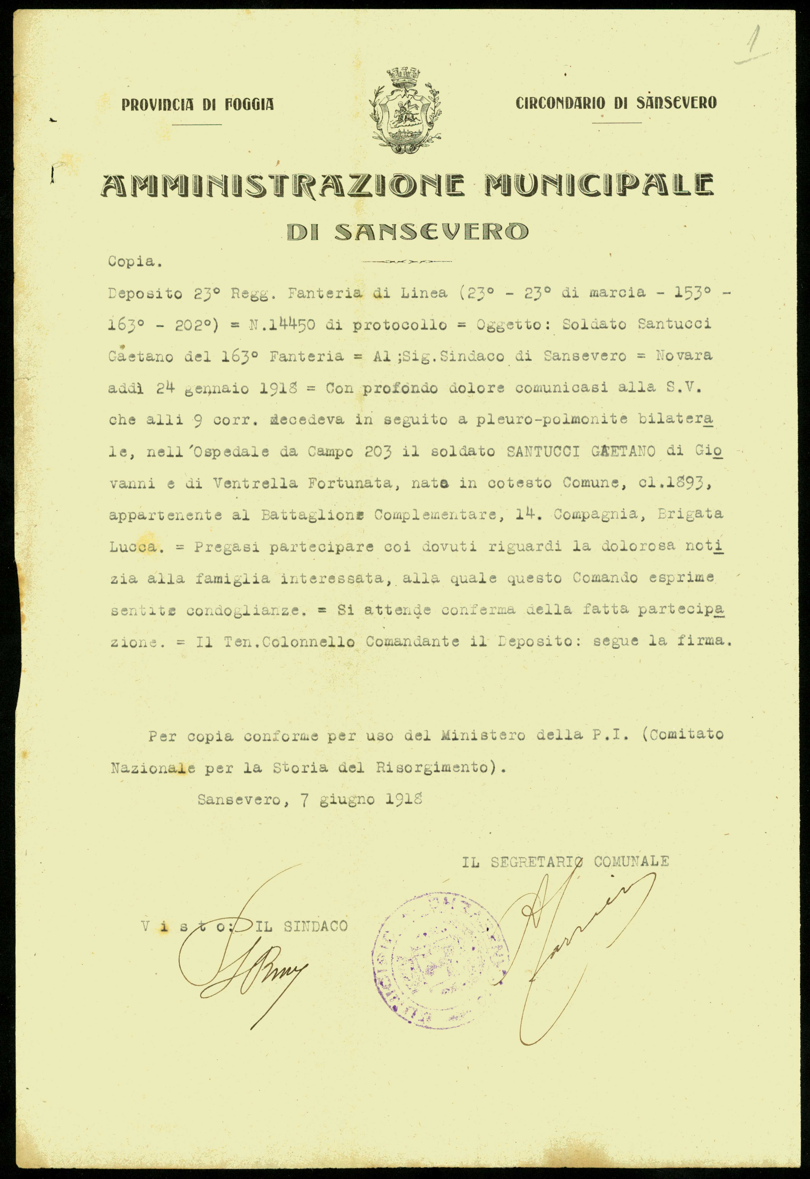 Documento: Santucci Gaetano, Sansevero (Foggia)