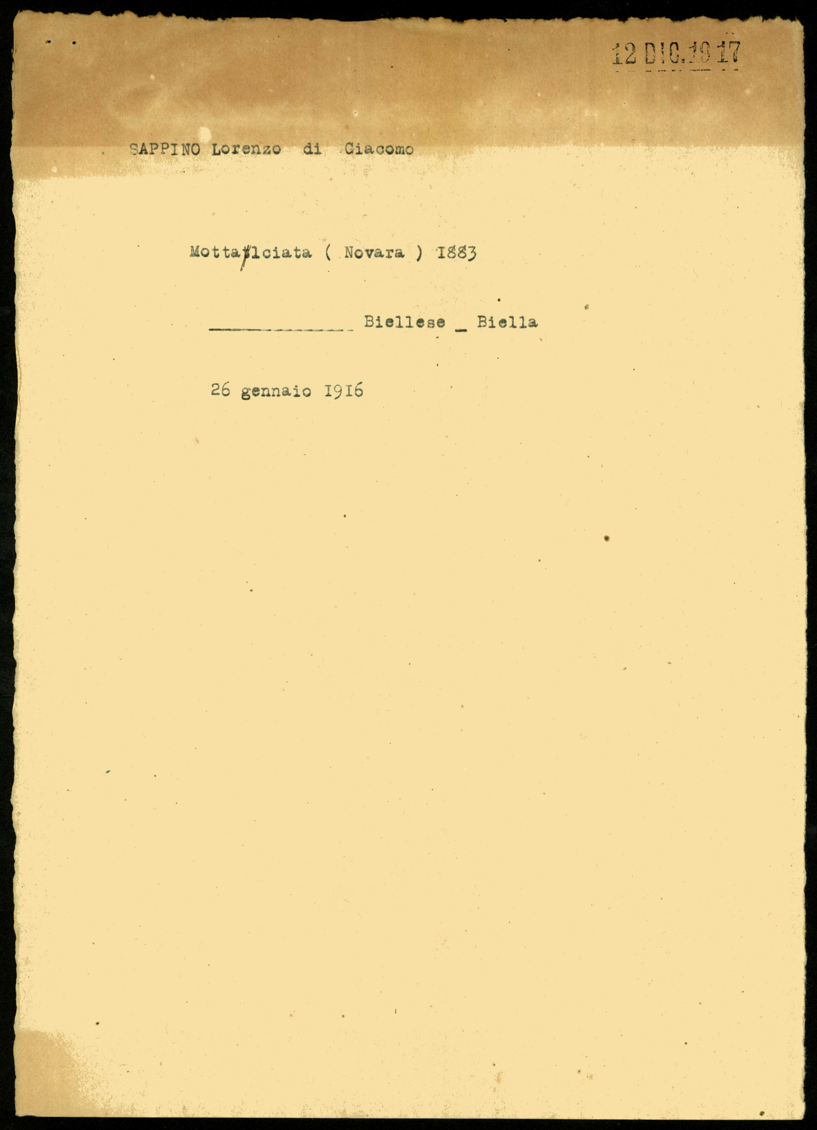 Percorso: Istituto per la Storia del Risorgimento Italian.../Fondo caduti prima guerra mondiale/Santucci Angelo - Sarasino Silvestro/Sappino Lorenzo, Mottalciata (Novara)