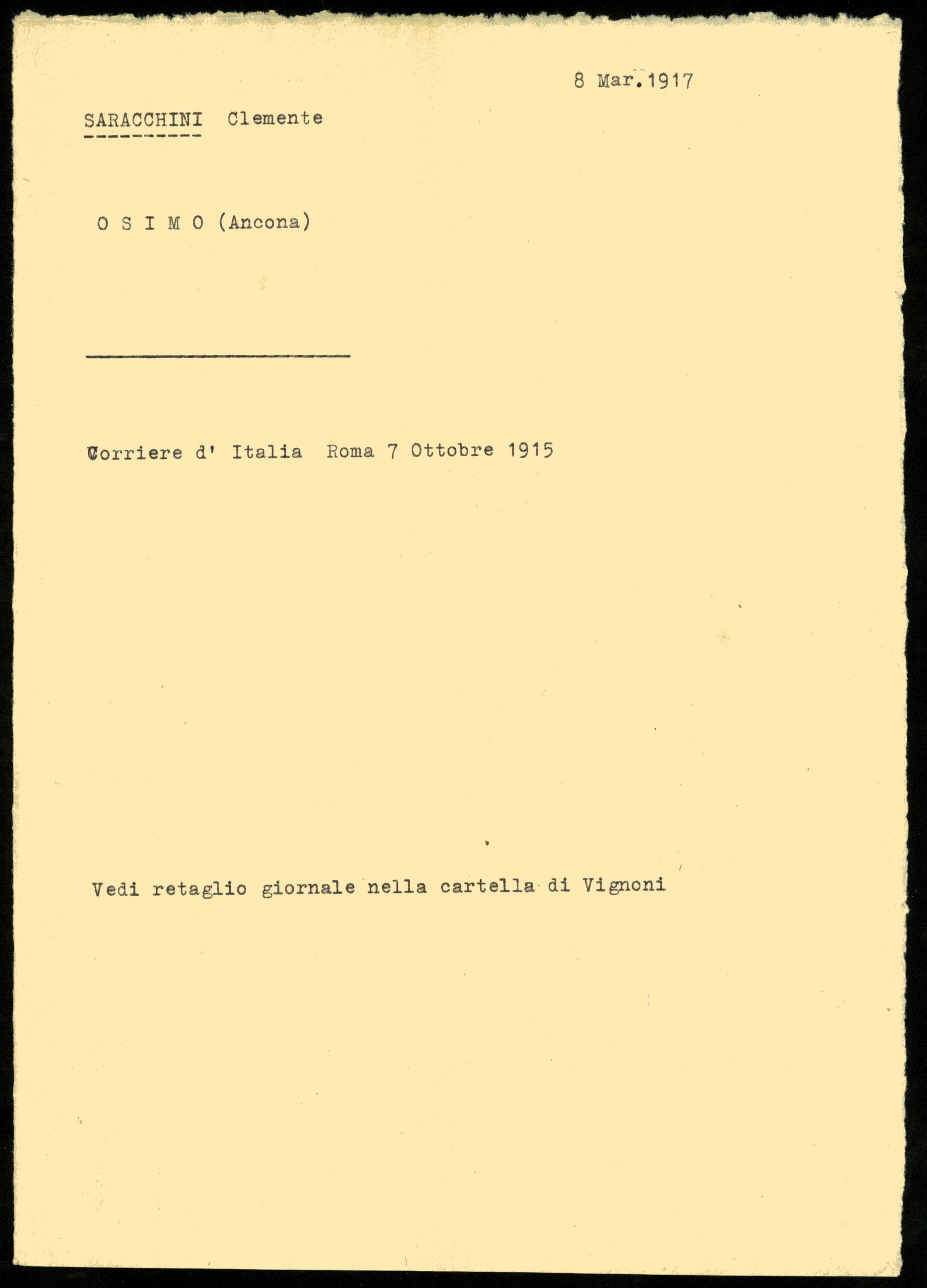 Documento: Saracchini Clemente, Osimo (Ancona)
