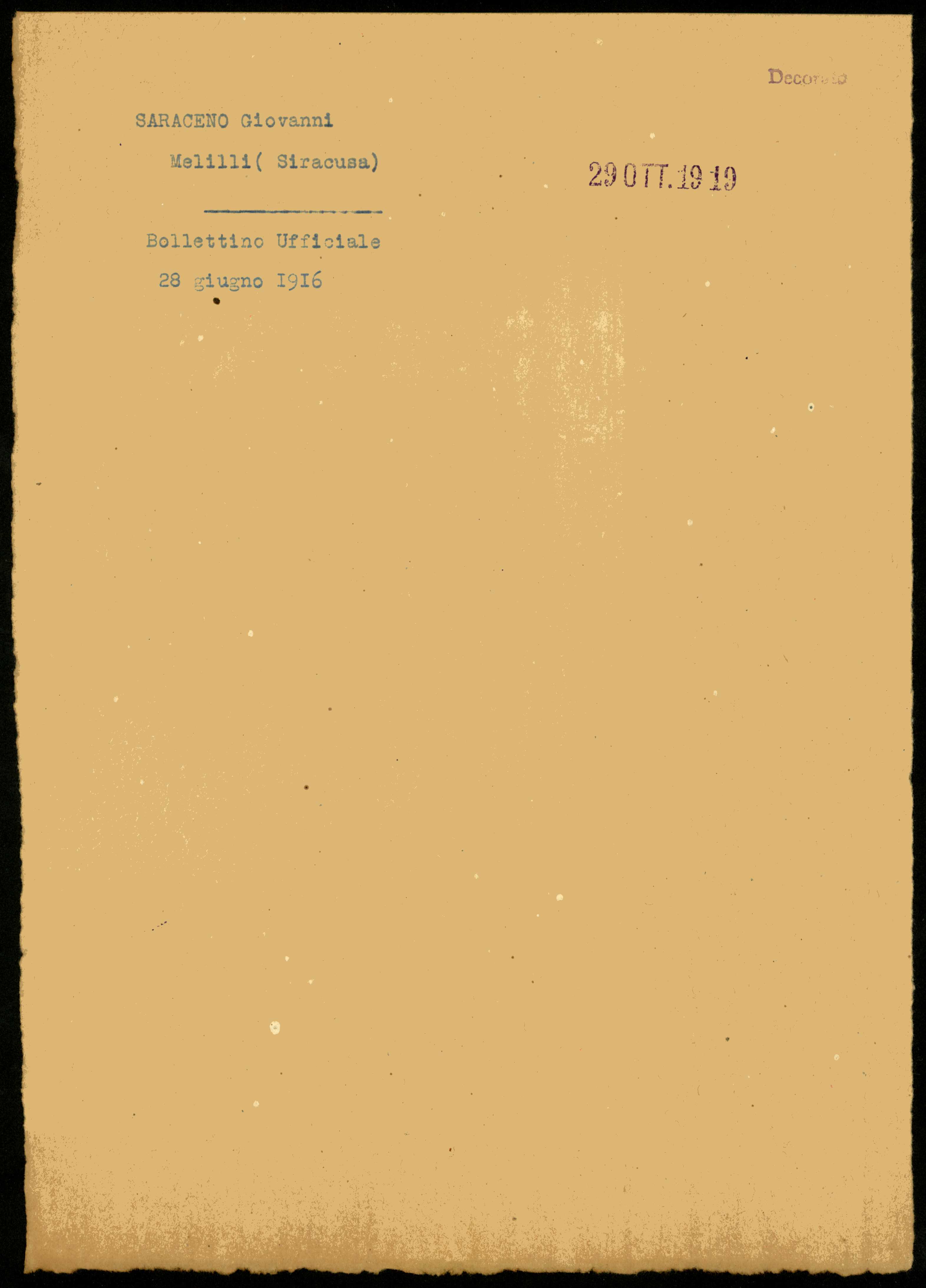 | Percorso: Istituto per la Storia del Risorgimento Italian.../Fondo caduti prima guerra mondiale/Santucci Angelo - Sarasino Silvestro/Saraceno Giovanni, Melilli (Siracusa) | |||||||||||