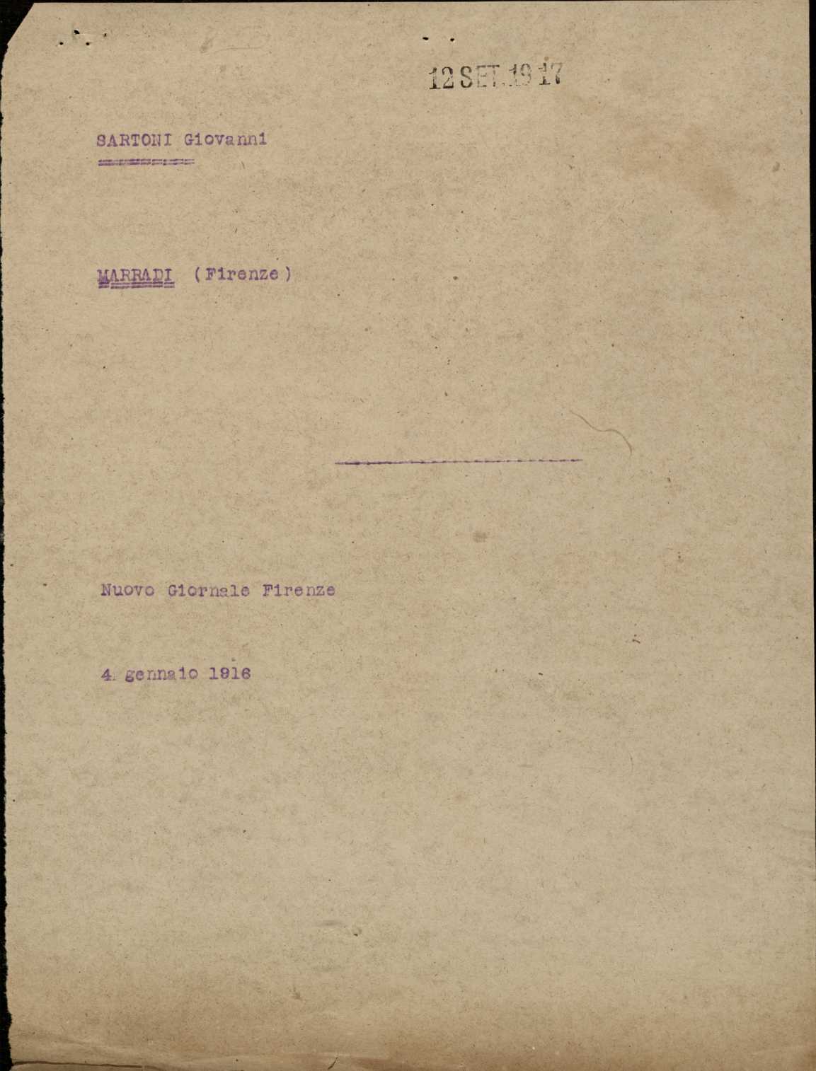 | Percorso: Istituto per la Storia del Risorgimento Italian.../Fondo caduti prima guerra mondiale/Sarchielli Alfredo - Sarzetti Alfredo/Sartoni Giovanni, Brisighella (Ravenna) | |||||||||||