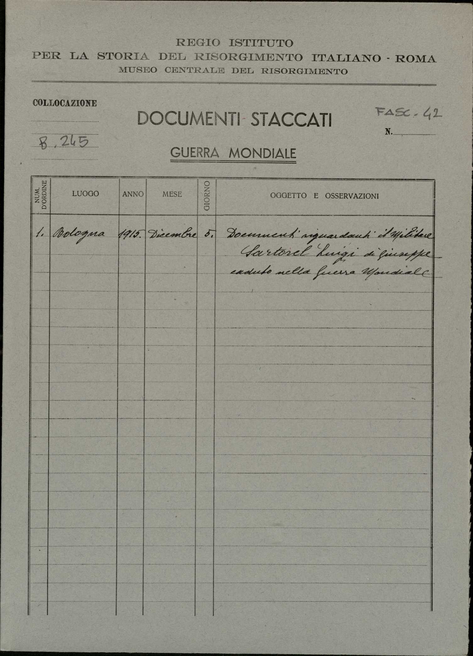 | Percorso: Istituto per la Storia del Risorgimento Italian.../Fondo caduti prima guerra mondiale/Sarchielli Alfredo - Sarzetti Alfredo/Sartorel Luigi, Cavazuccherina (Venezia) | |||||||||||