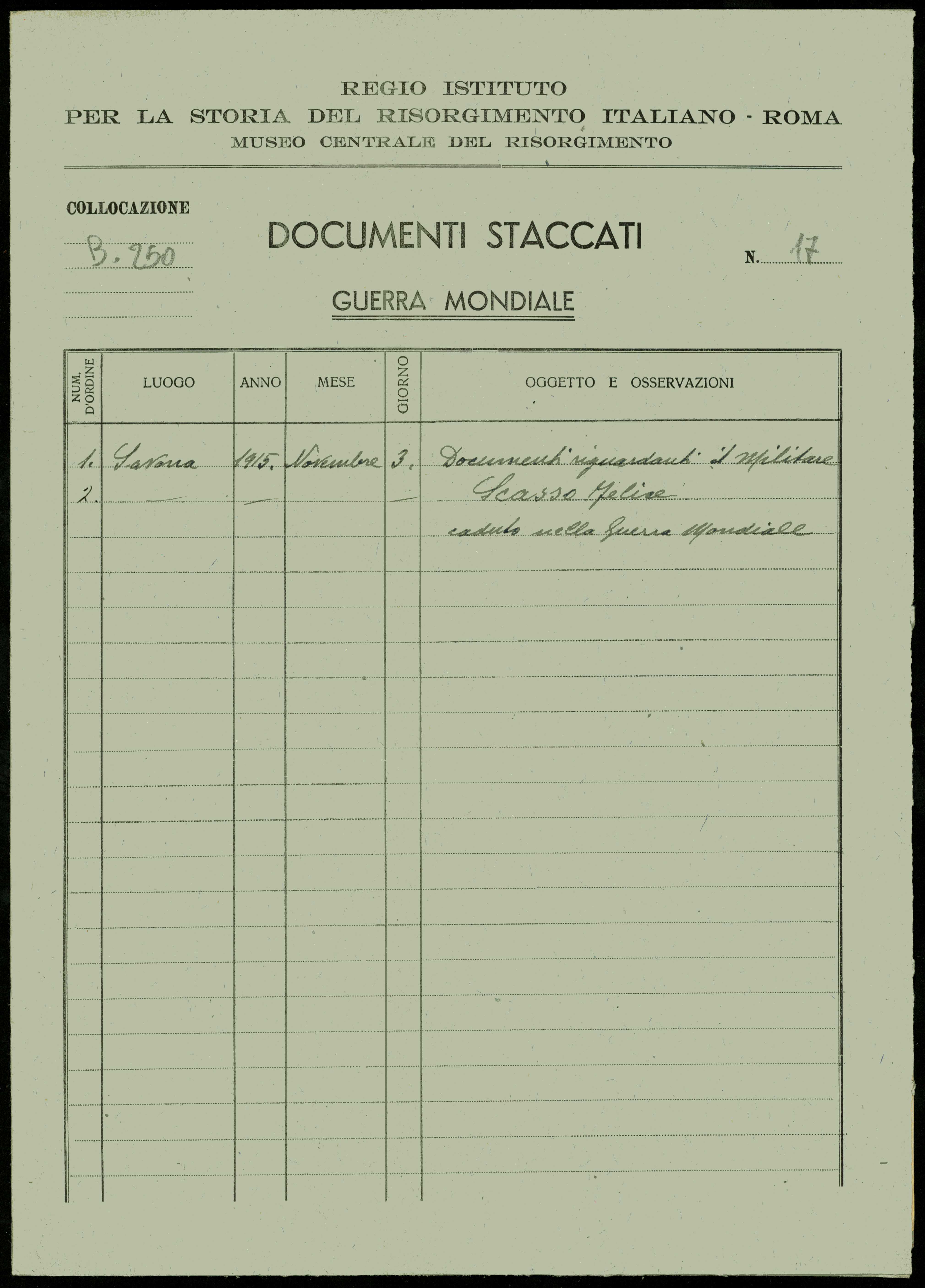 Istituto per la Storia del Risorgimento Italian.../Fondo caduti prima guerra mondiale/Scarrone Leone - Scherl Guglielmo/Scasso Felice, Quiliano (Genova)