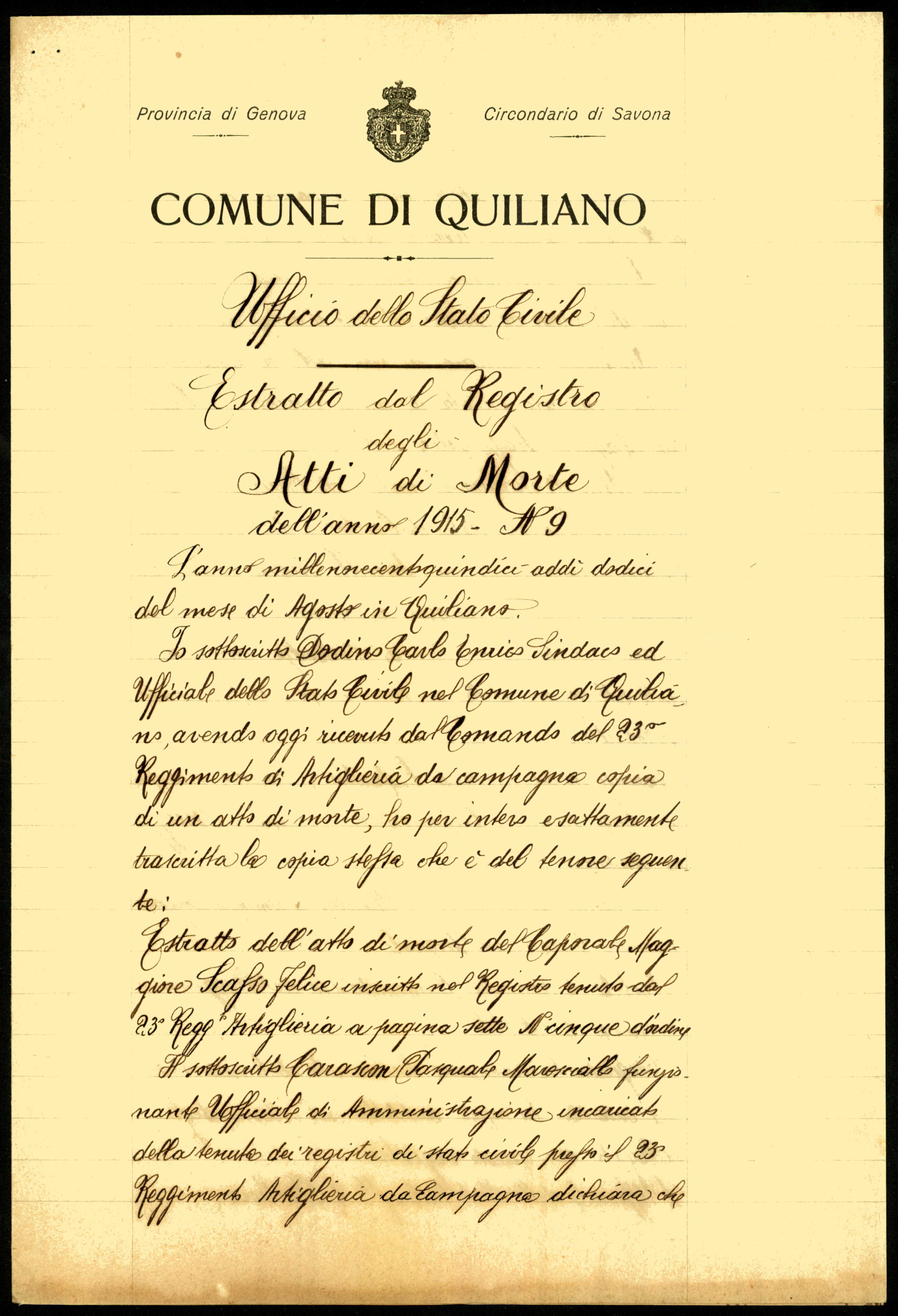 Istituto per la Storia del Risorgimento Italian.../Fondo caduti prima guerra mondiale/Scarrone Leone - Scherl Guglielmo/Scasso Felice, Quiliano (Genova)