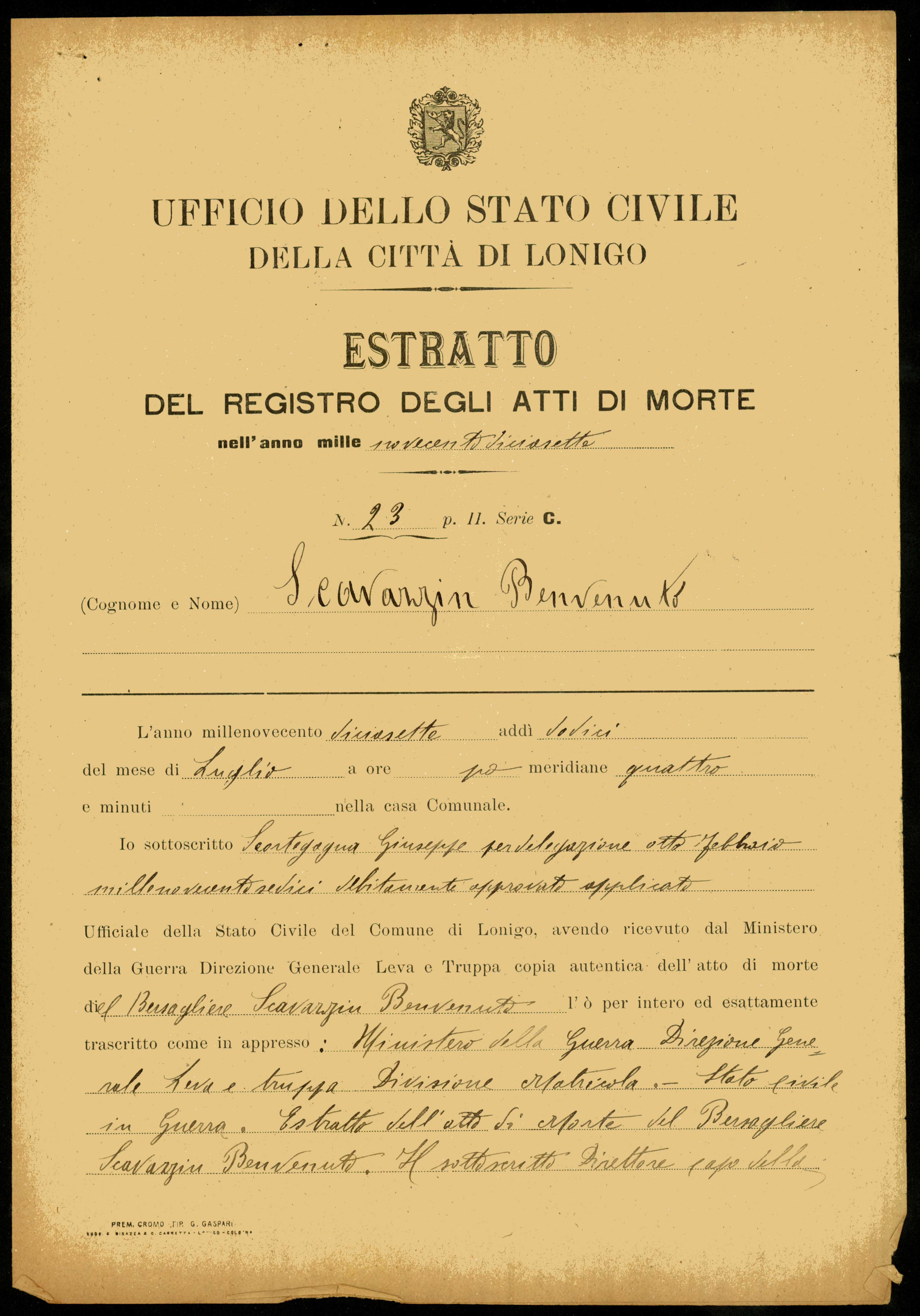 Documento: Scavazzin Benvenuto, Lonigo (Vicenza)
