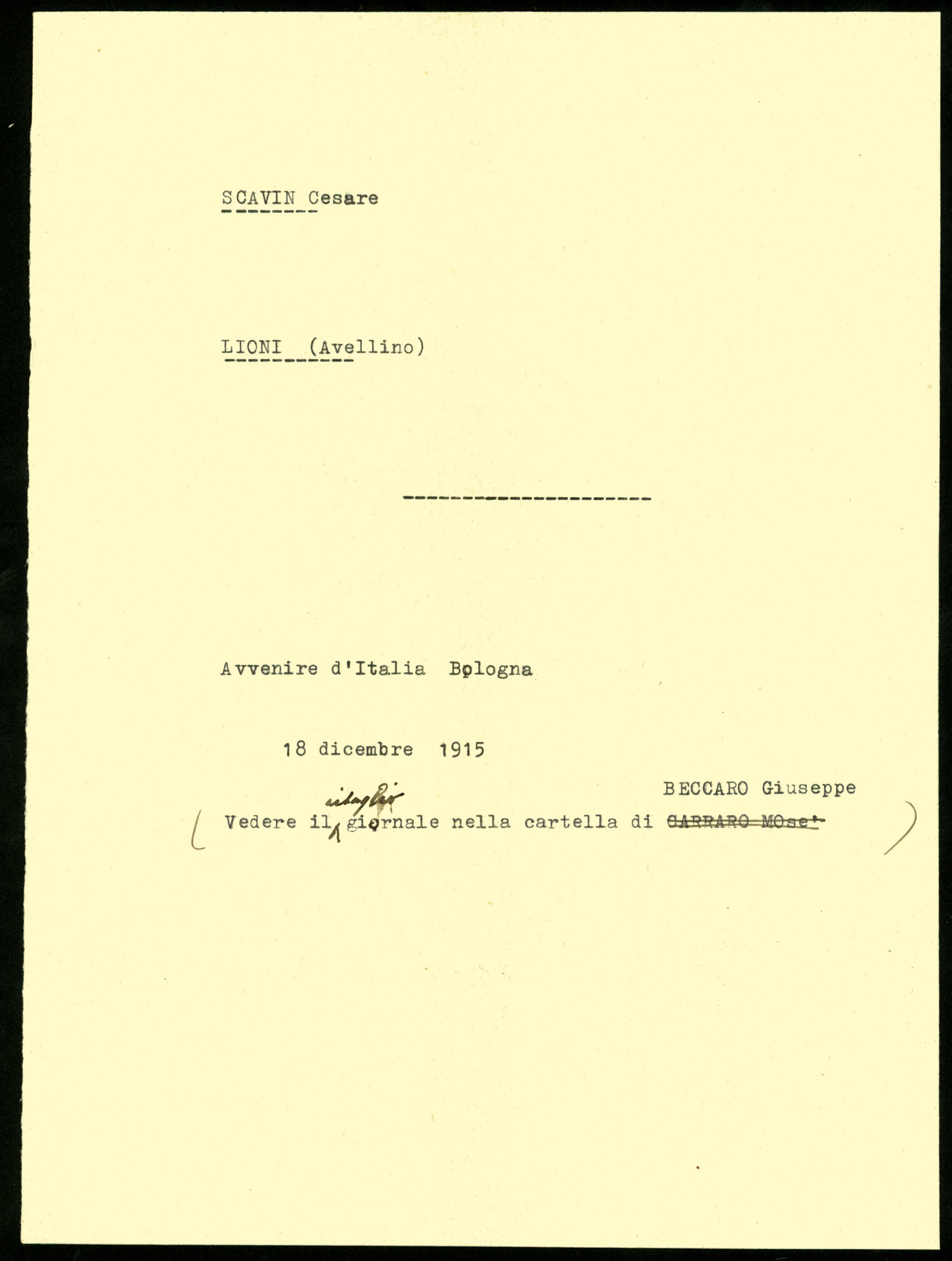 Istituto per la Storia del Risorgimento Italian.../Fondo caduti prima guerra mondiale/Scarrone Leone - Scherl Guglielmo/Scavin Cesare, Lioni (Avellino)