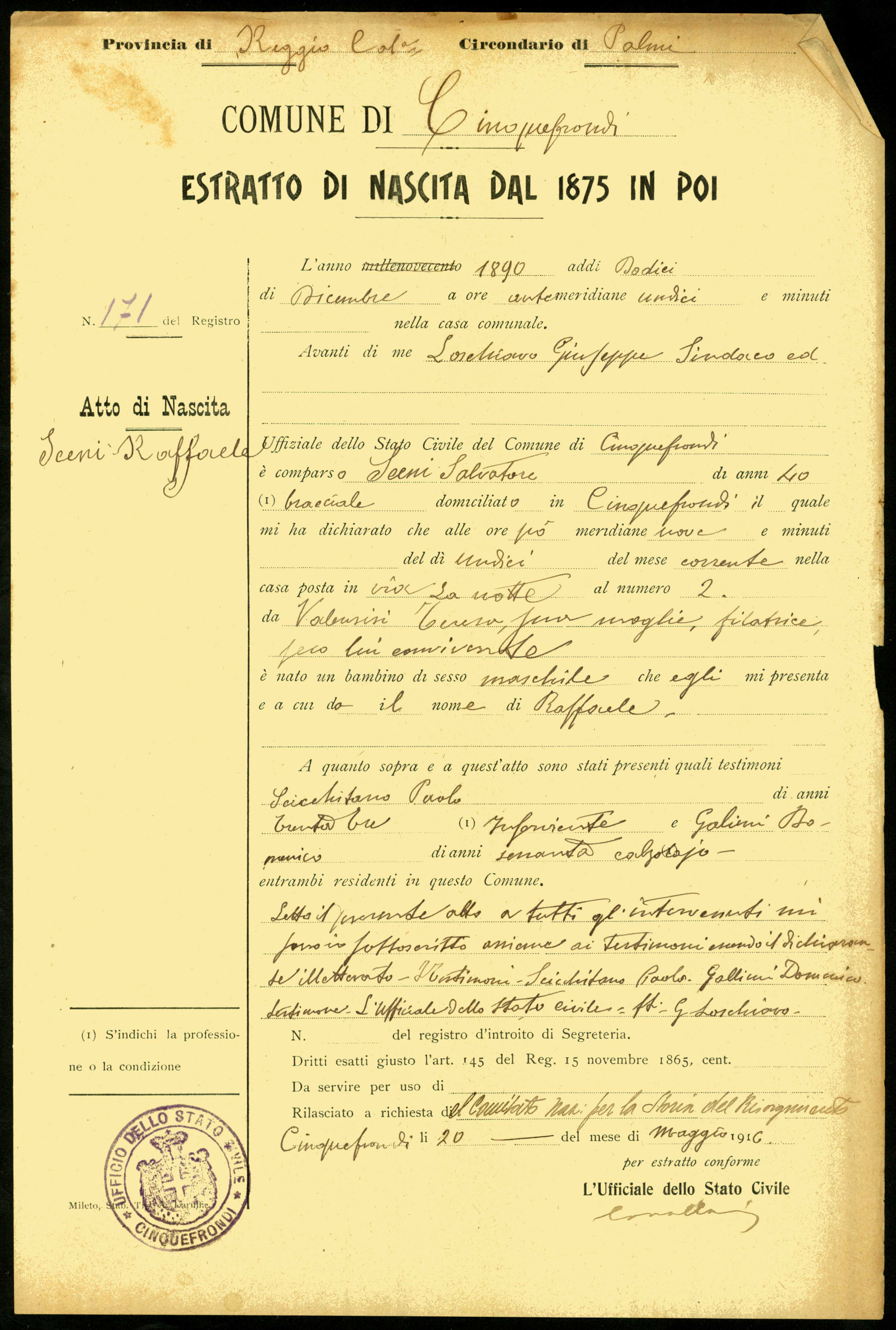 Documento: Sceni Raffaele, Cinquefrondi (Reggio Calabria)