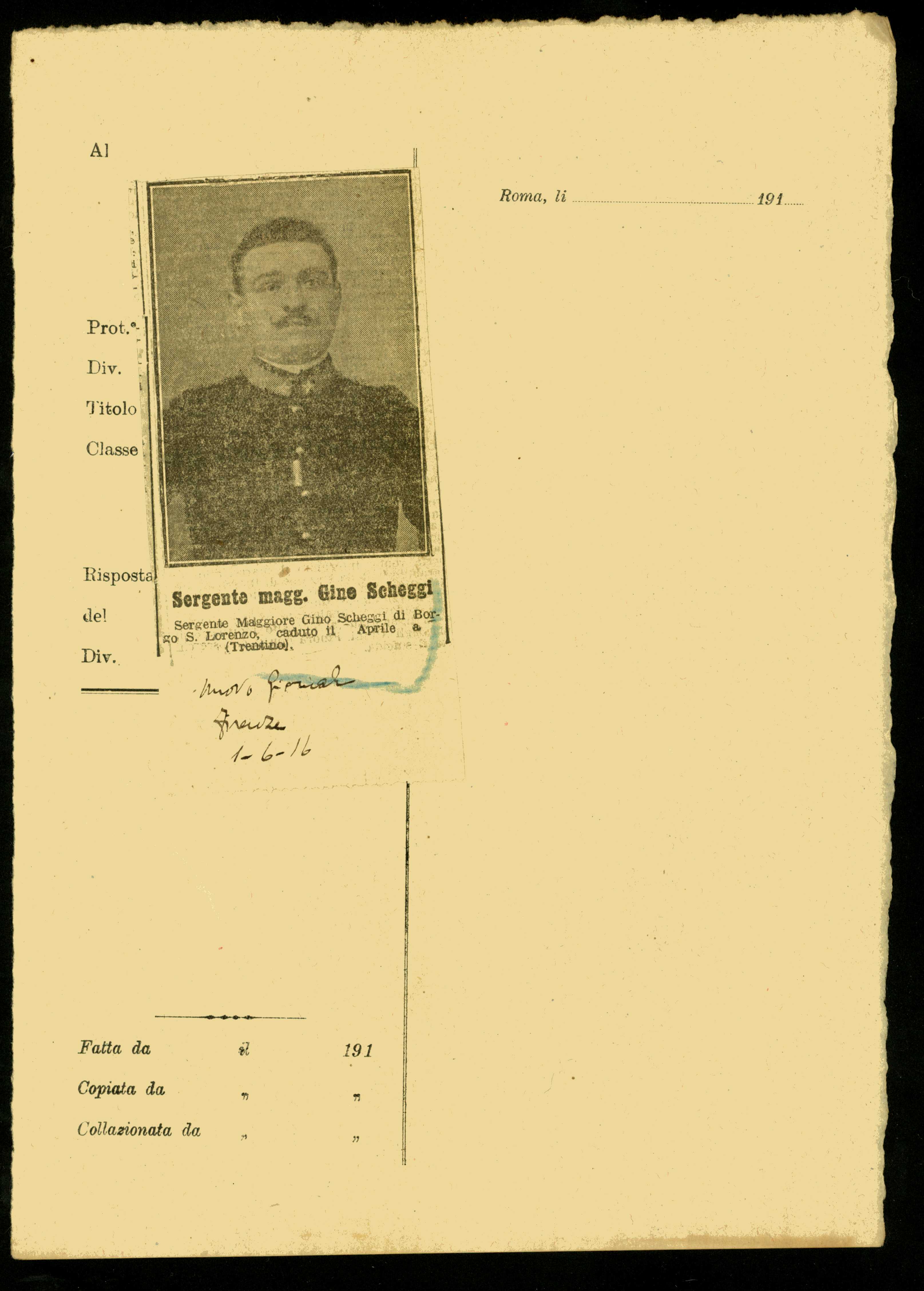 | Percorso: Istituto per la Storia del Risorgimento Italian.../Fondo caduti prima guerra mondiale/Scarrone Leone - Scherl Guglielmo/Scheggi Gino, Borgo S. Lorenzo (Firenze) | |||||||||||