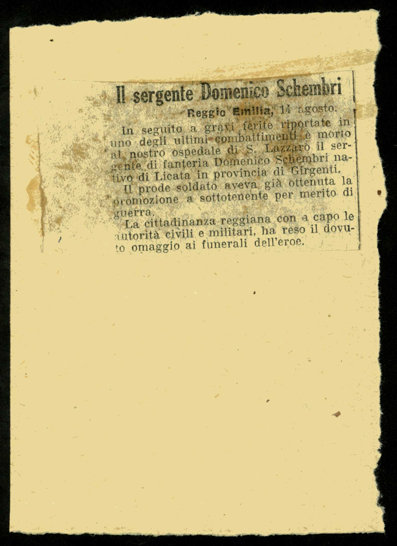 Percorso: Istituto per la Storia del Risorgimento Italian.../Fondo caduti prima guerra mondiale/Scarrone Leone - Scherl Guglielmo/Schembri Domenico, Licata (Girgenti)