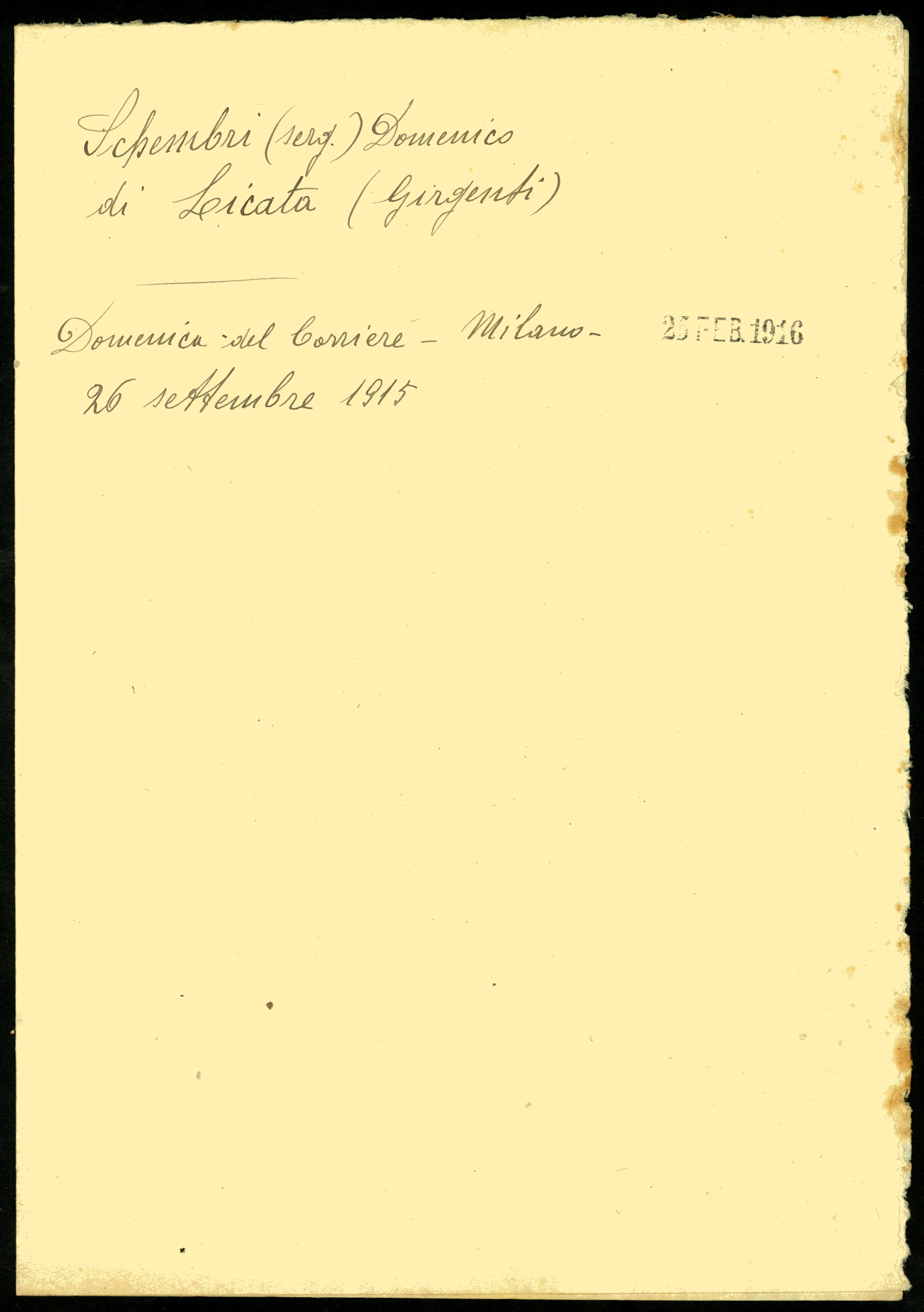 Documento: Schembri Domenico, Licata (Girgenti)