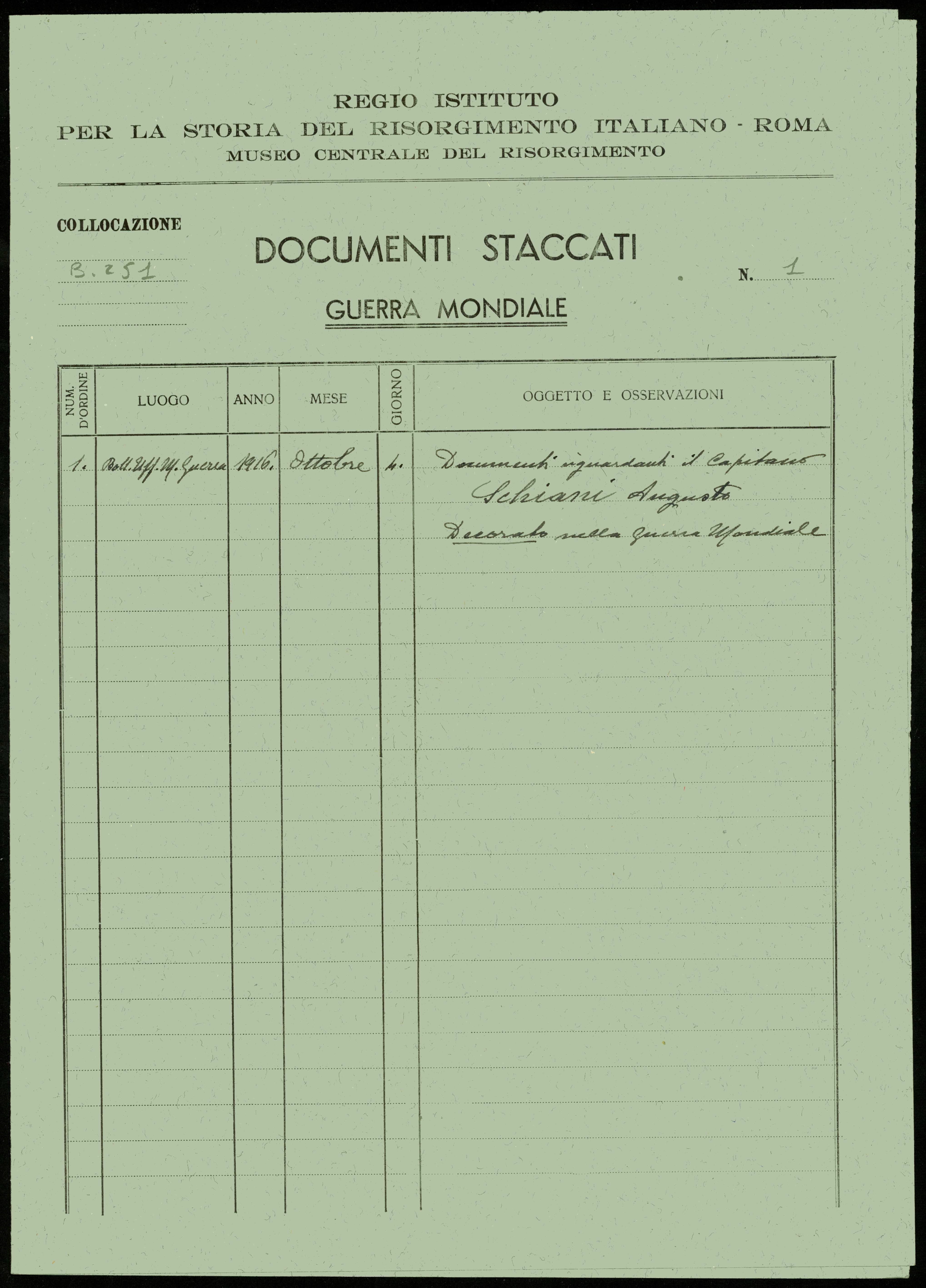 Istituto per la Storia del Risorgimento Italian.../Fondo caduti prima guerra mondiale/Schiani Augusto - Schipani Ciro/Schiani Augusto, Napoli